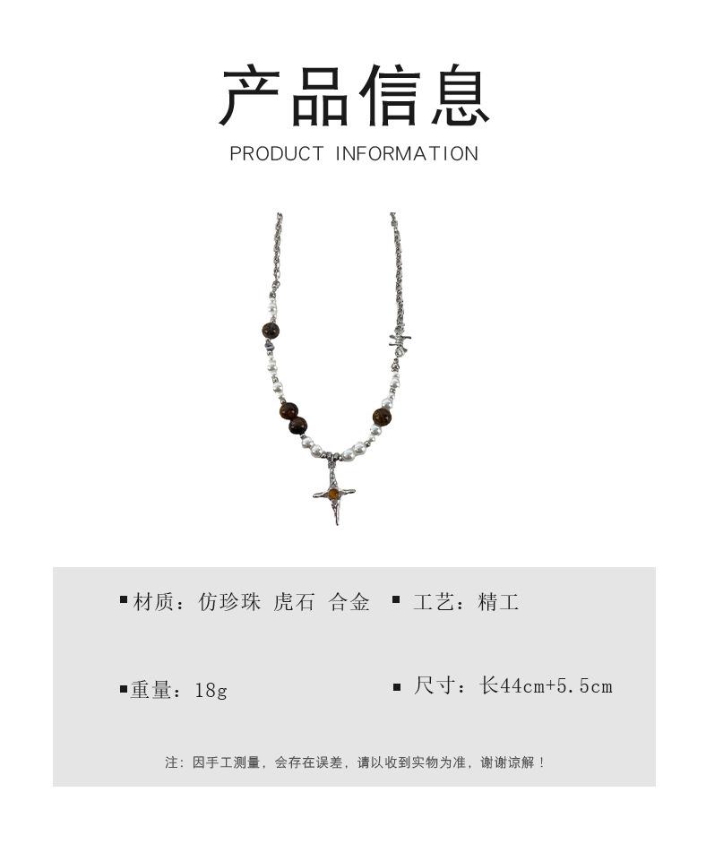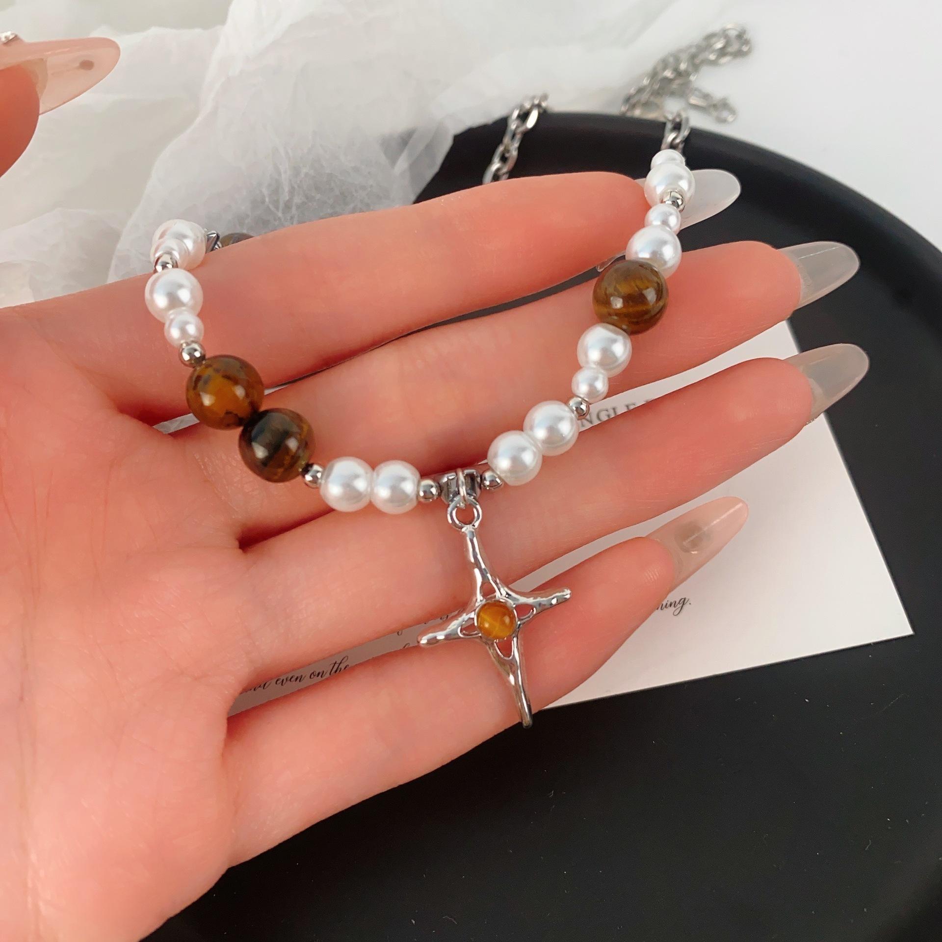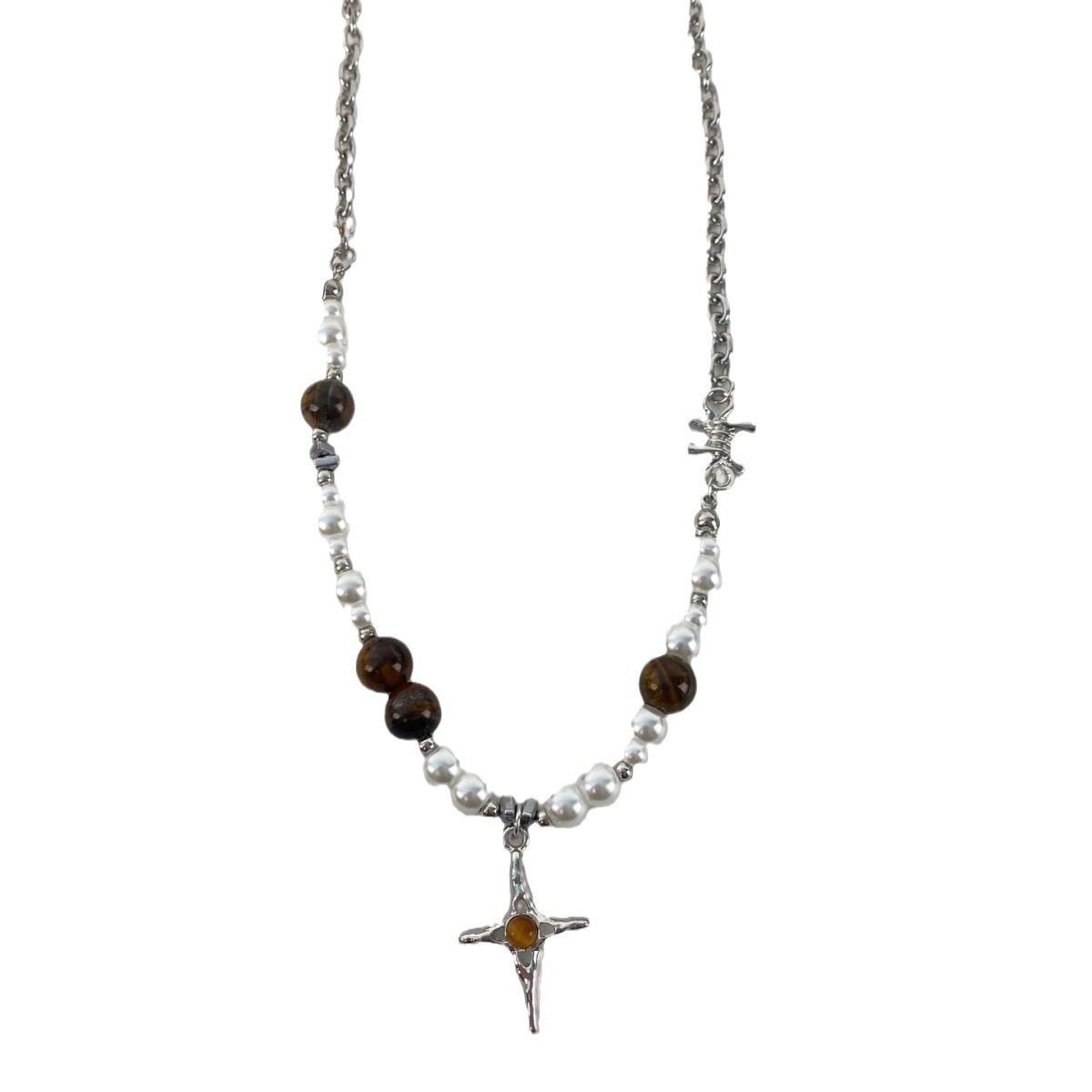 Maillard tiger eye stone imitation pearl cross clavicle chain