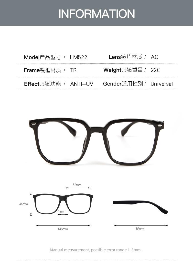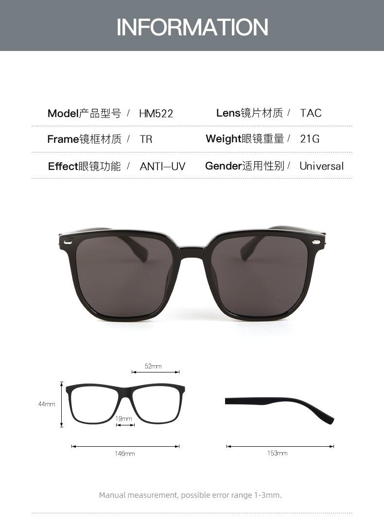 Hm522 bright black frame gray film, Hm522 bright black frame tea slices, Hm522 bright black frame dark green f...