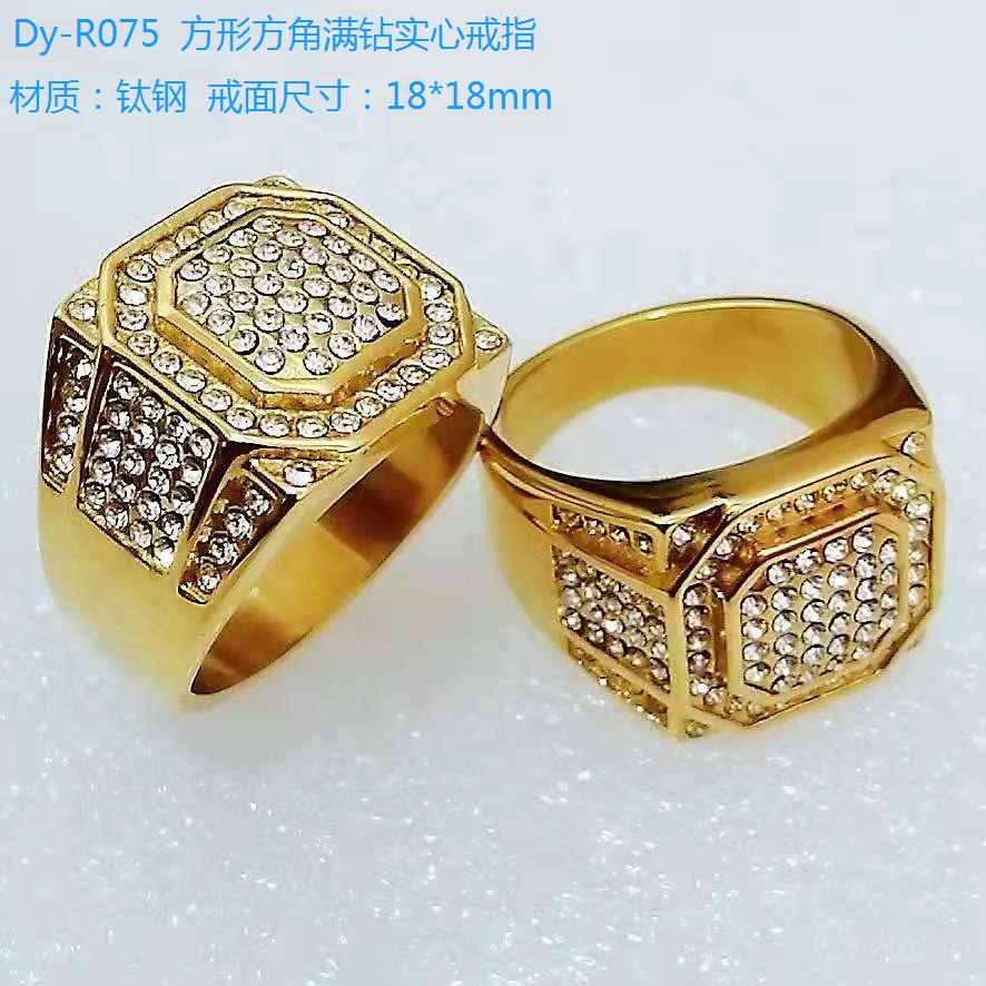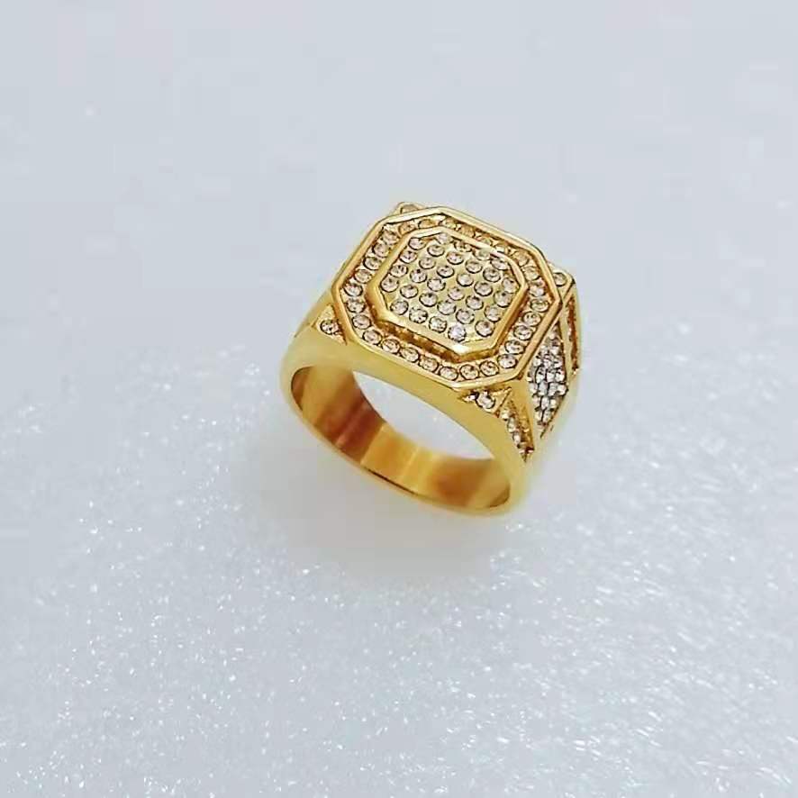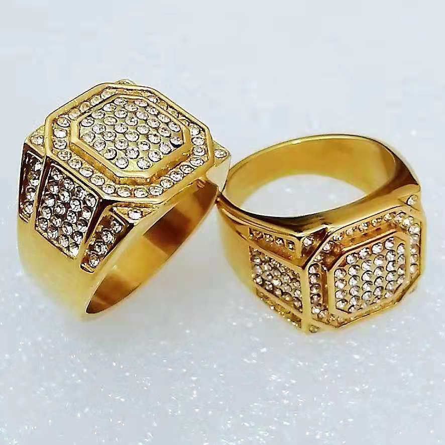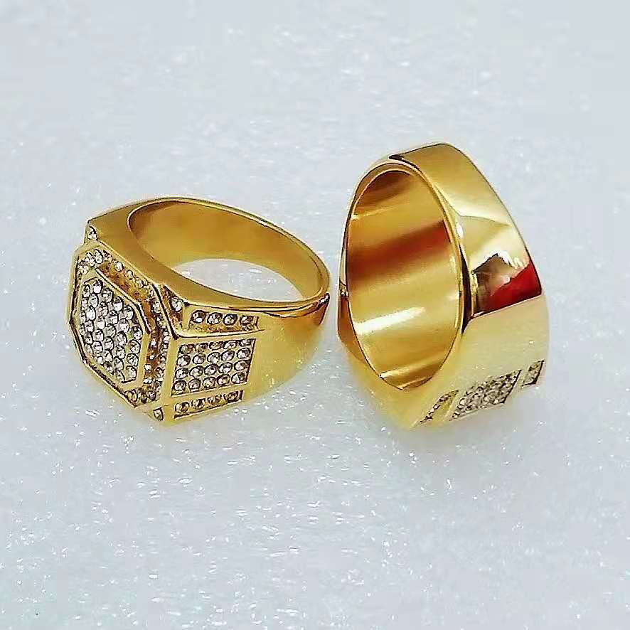 Anillo para hombre europeo y americano transfronterizo nuevo de club nocturno hip-hop HIPHOP joyería acero de titanio chapado en oro conservador del color diamante completo sólido