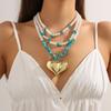 Collar turquesa bohemio retro europeo y americano, diseño de nicho avanzado, collar simple y elegante, cadena de clavícula