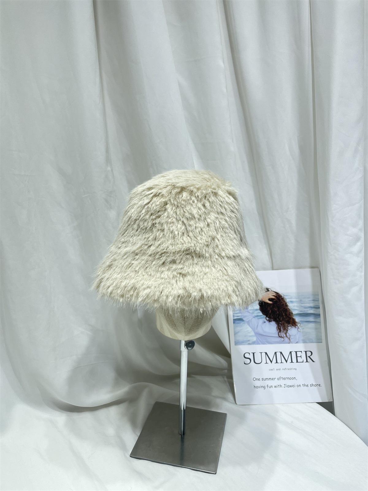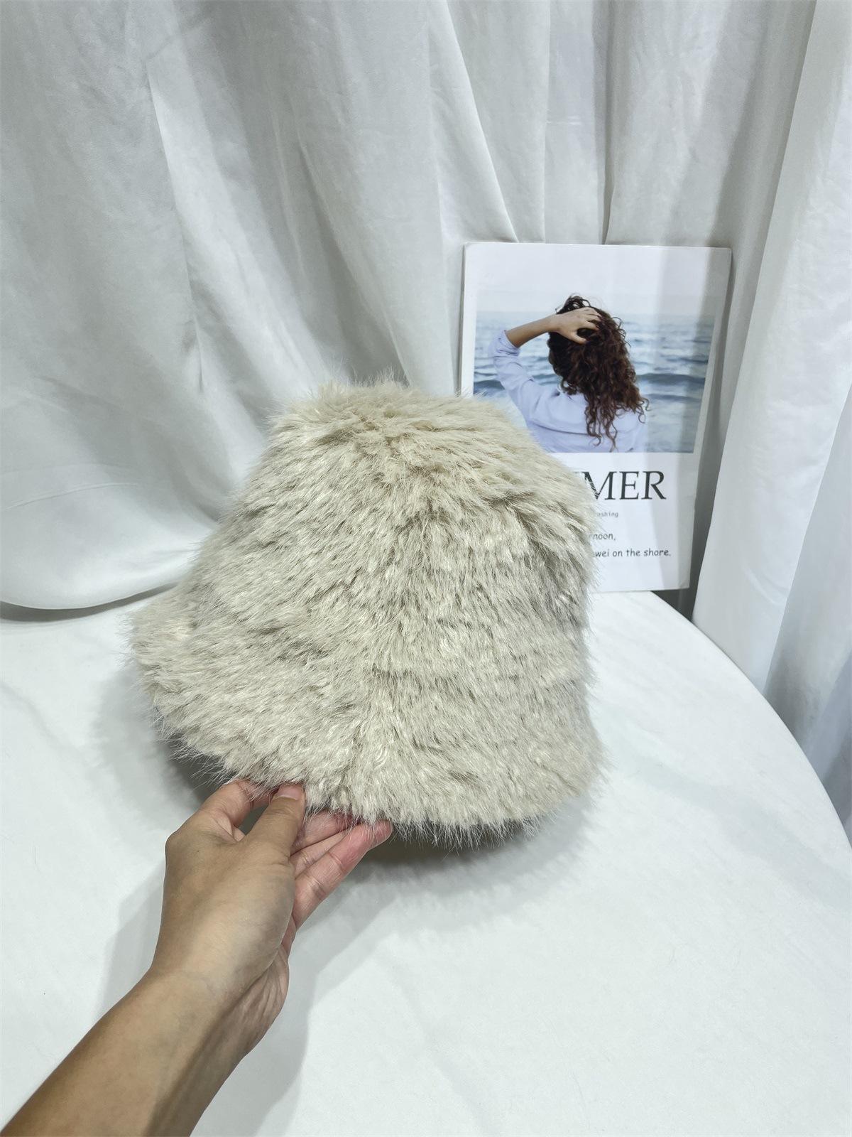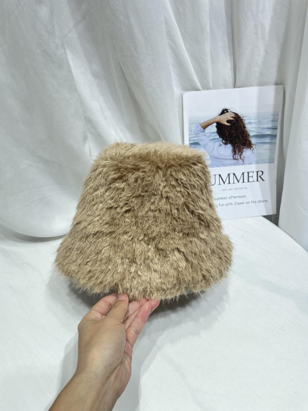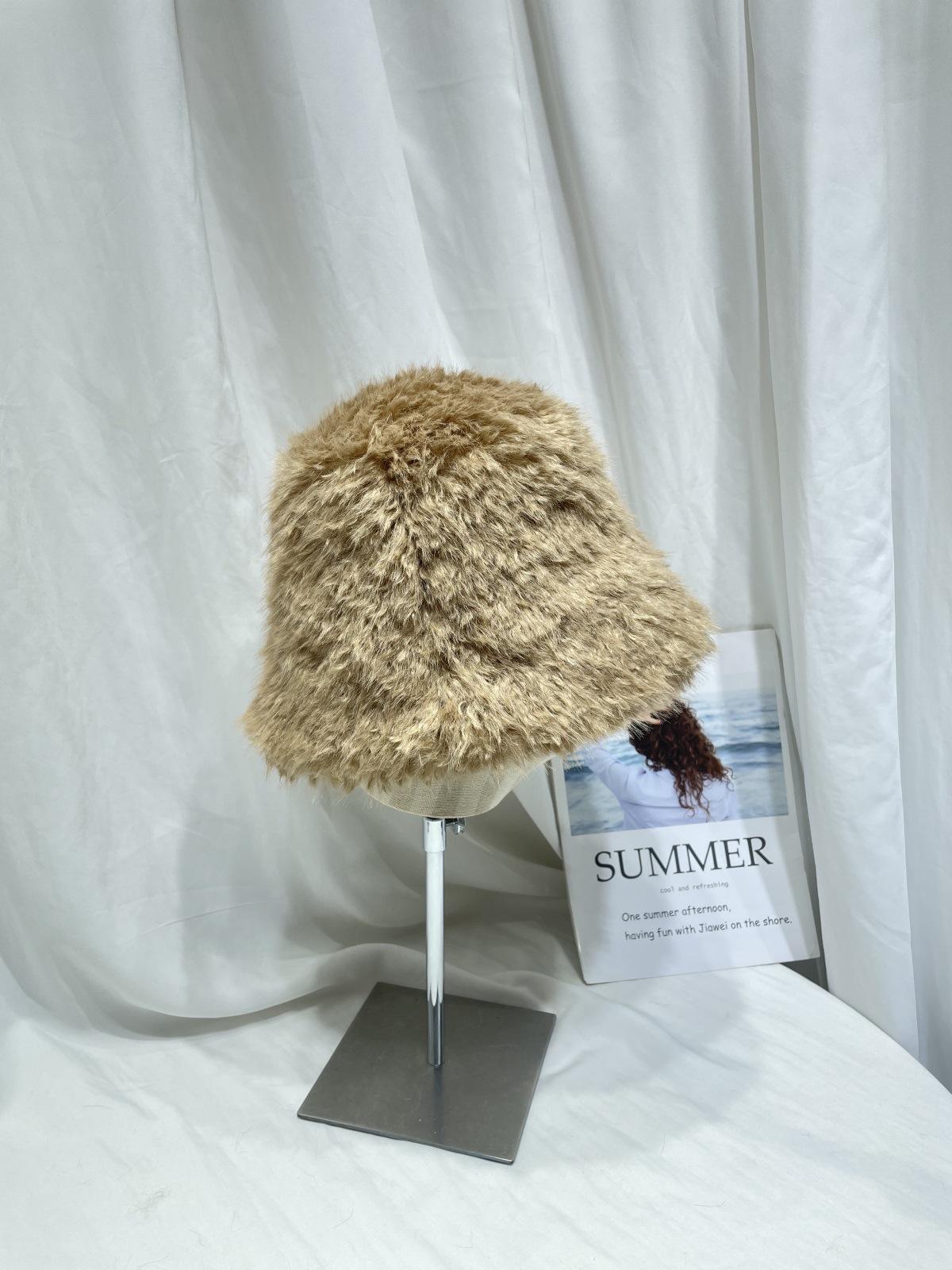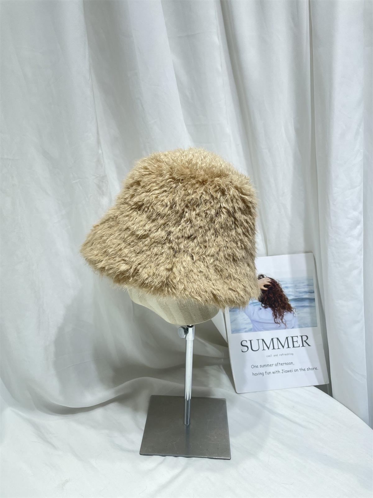 Sombrero de pescador de felpa de color sólido simple de estilo japonés para mujer, para otoño e invierno, pequeño, grueso y cálido, informal, combinable con todo.