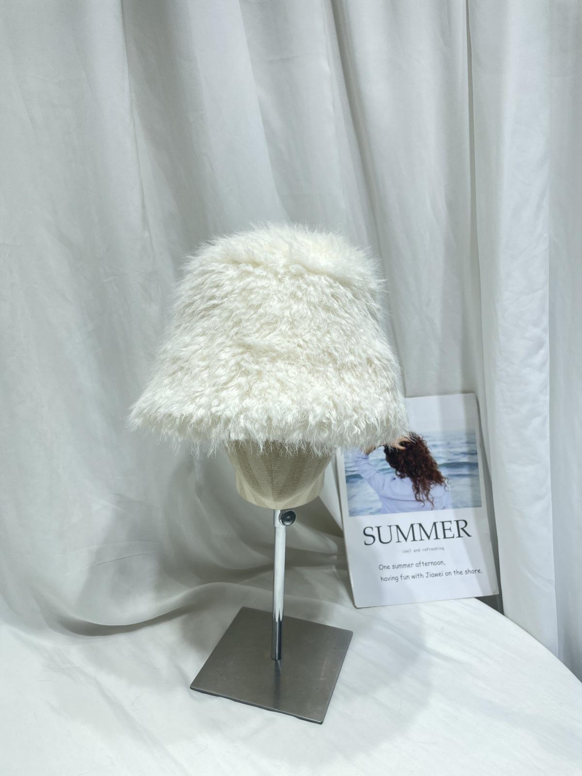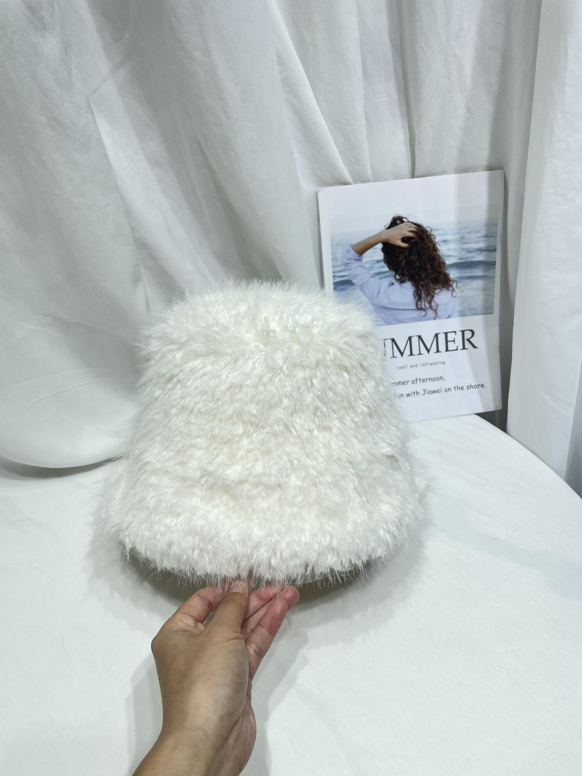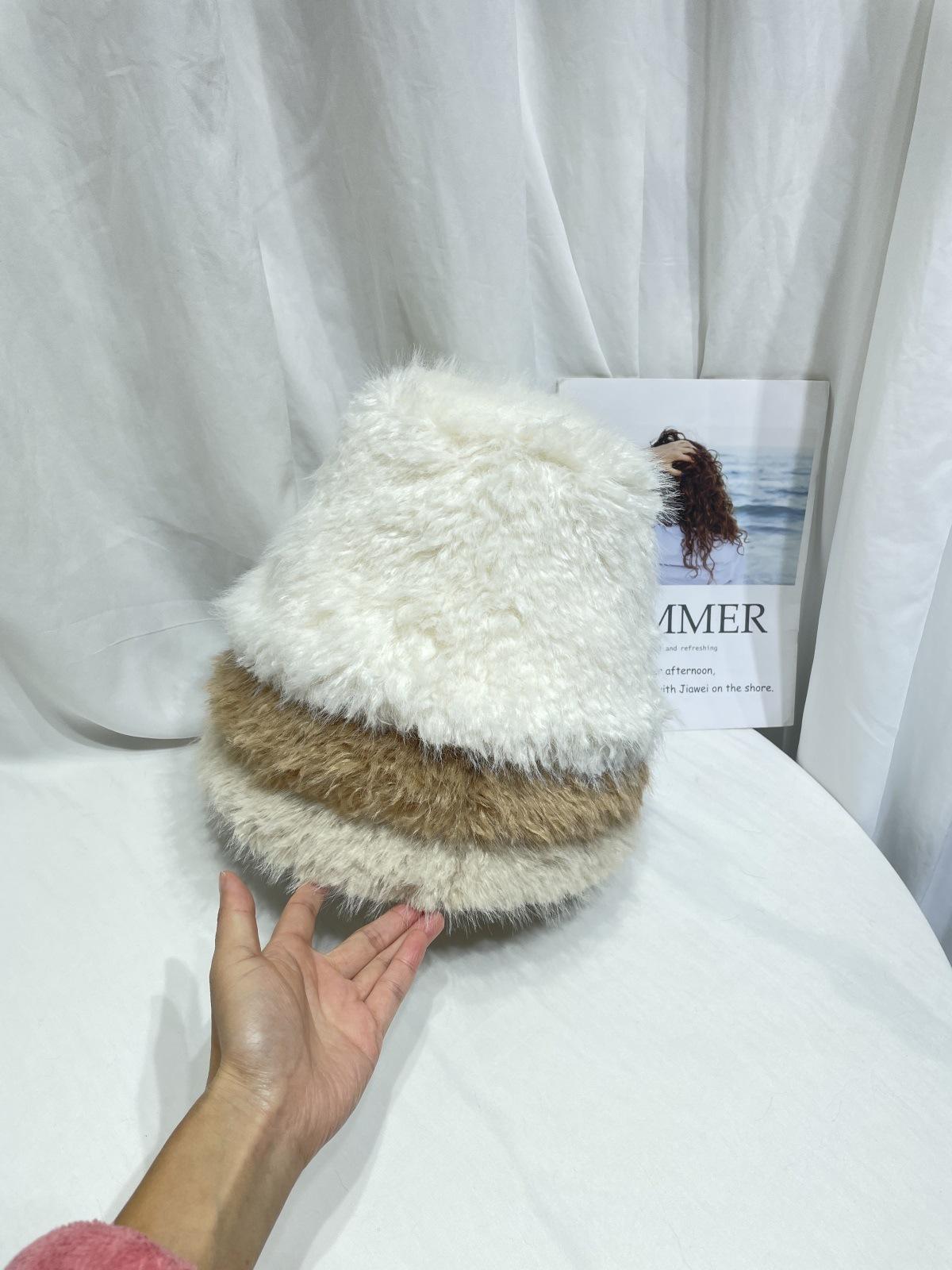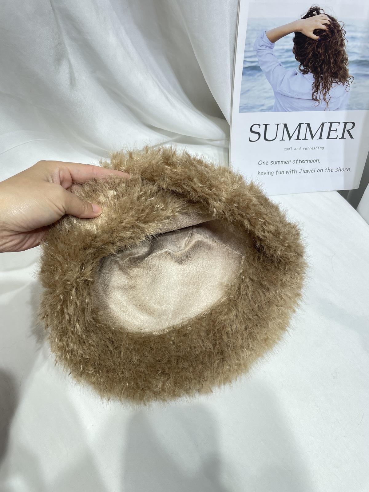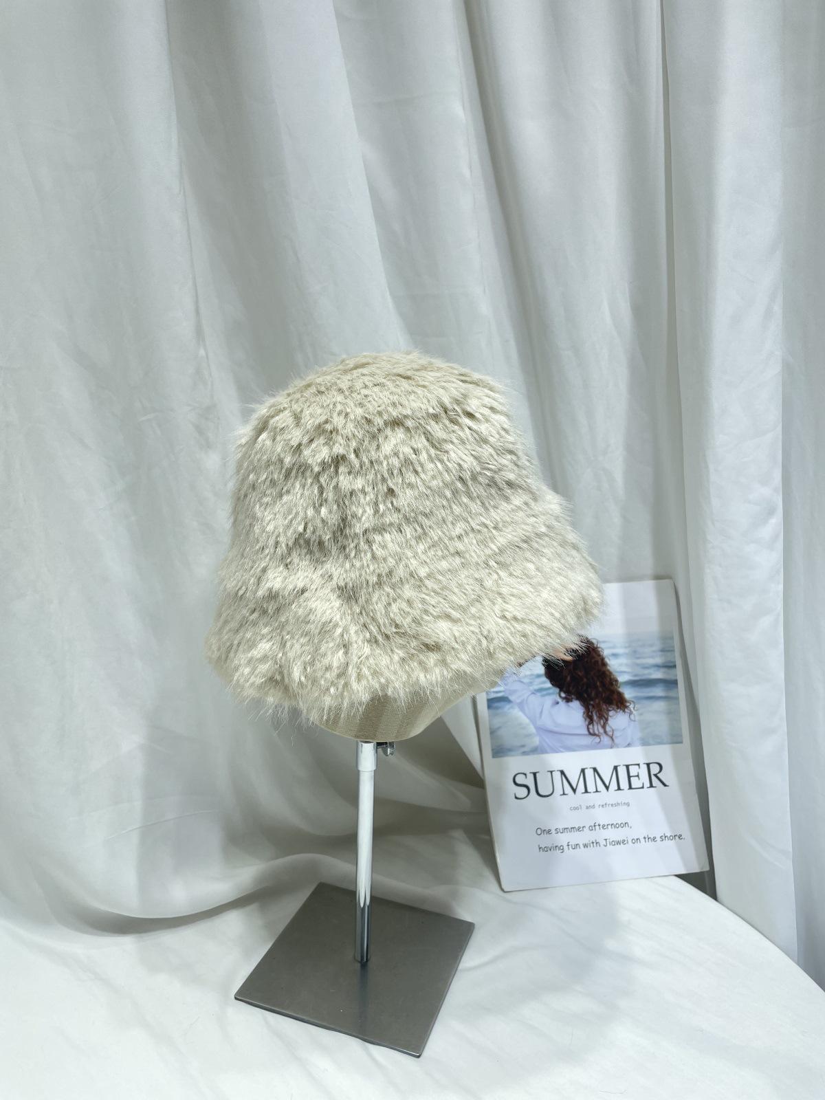 Sombrero de pescador de felpa de color sólido simple de estilo japonés para mujer, para otoño e invierno, pequeño, grueso y cálido, informal, combinable con todo.