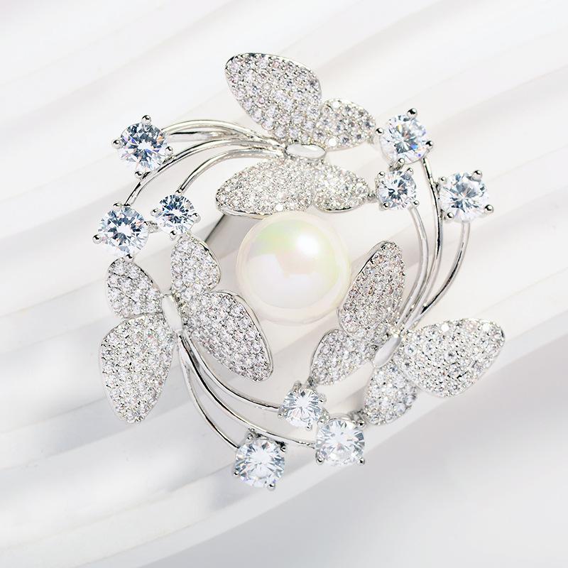 Broche de perlas de mariposa de alta gama, diseño de nicho, exquisito pin de moda, versátil, abrigo, suéter, accesorios, ramillete
