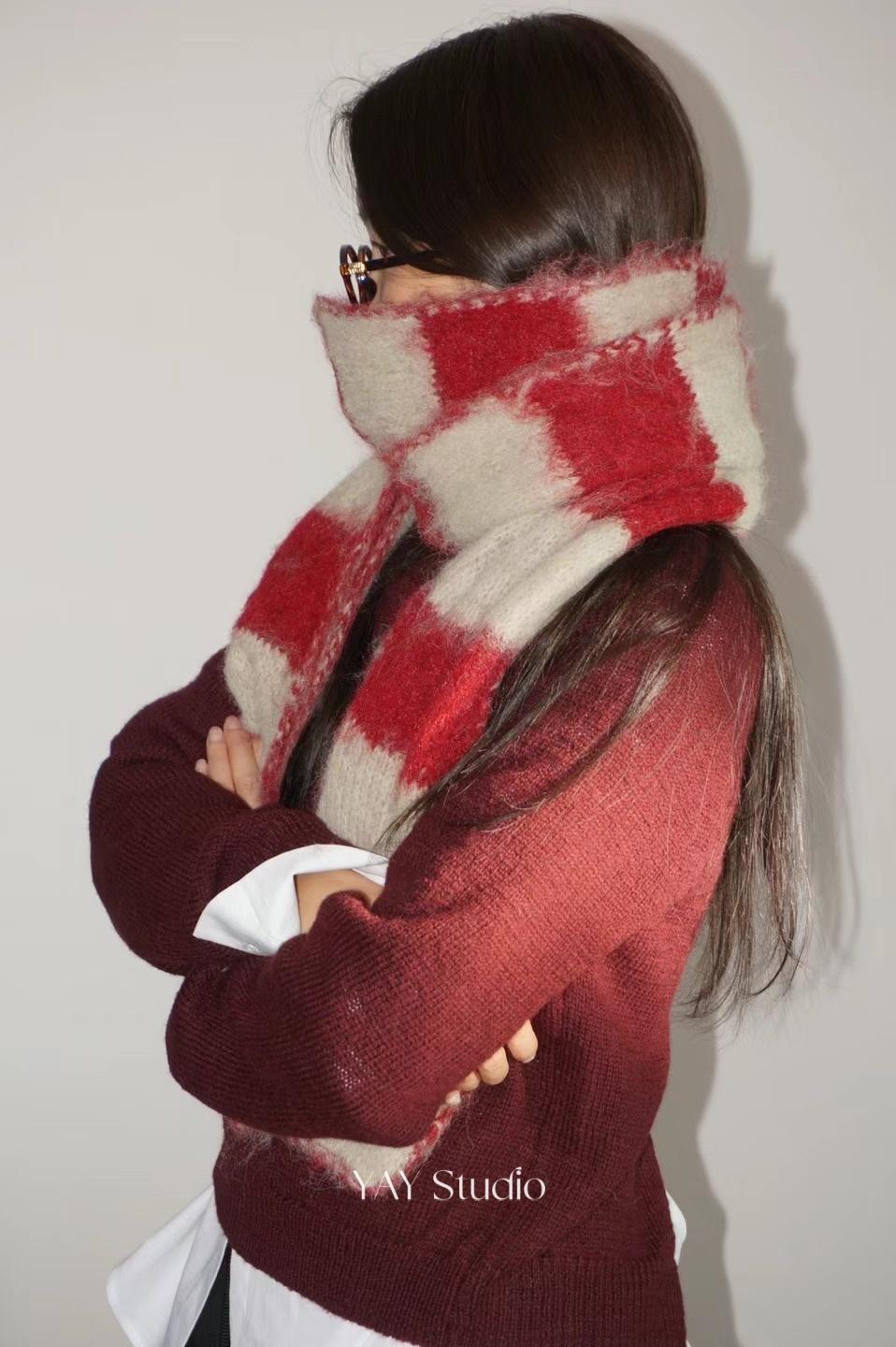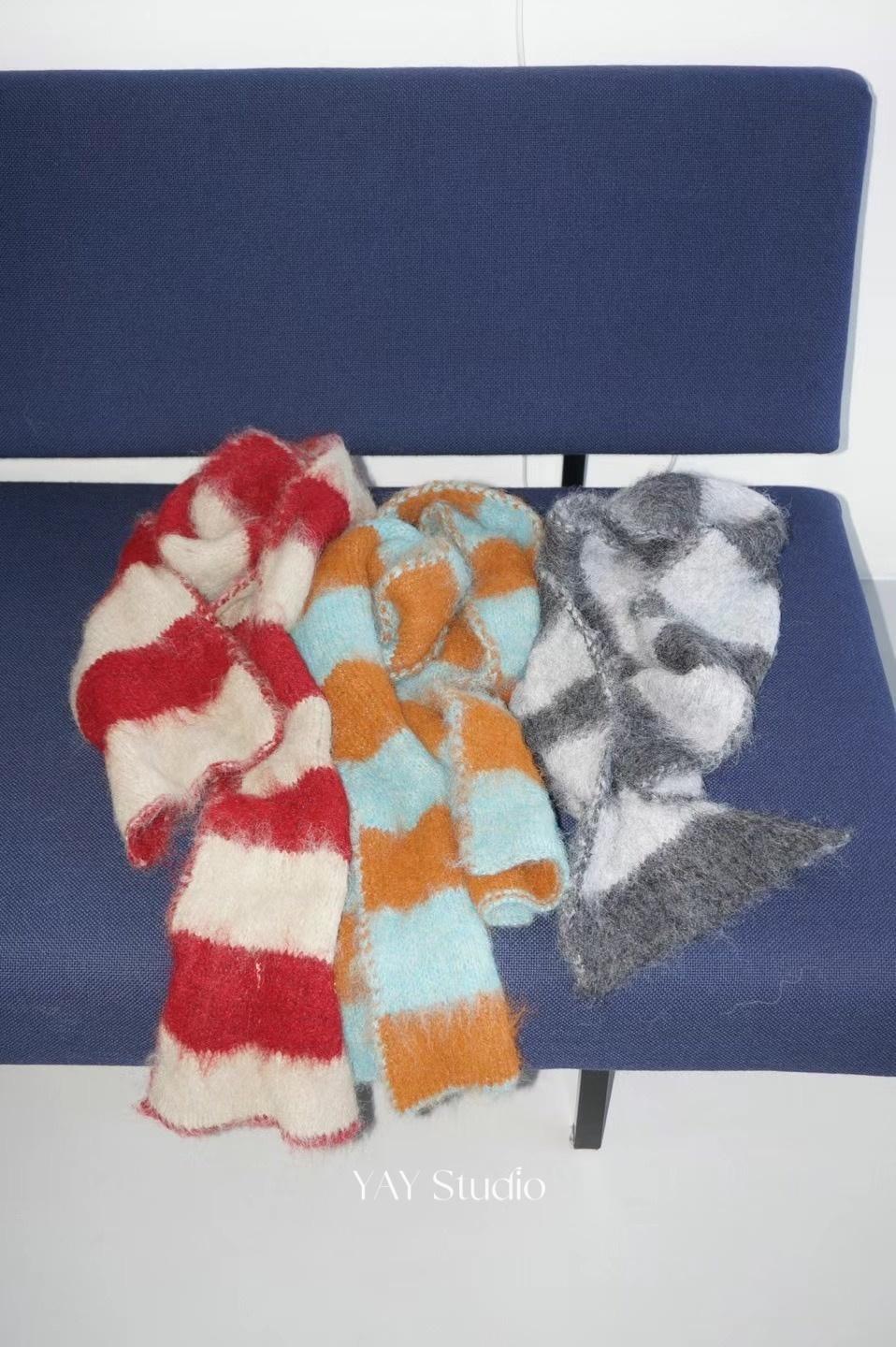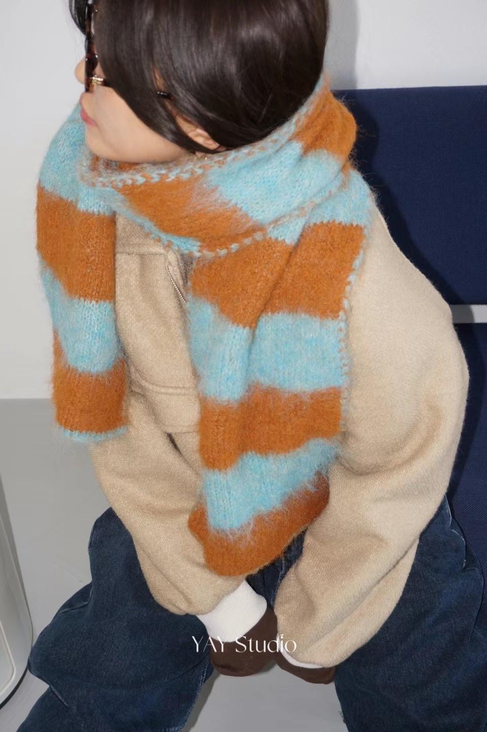 YAY Corea del Sur Dongdaemun compra bufanda larga cálida de rayas anchas de color a juego de felpa retro
