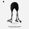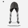 Gorro de lana cálido de otoño e invierno tejido a mano con bolsa hueca, gorro de punto con orejeras y borlas de estilo étnico para mujer