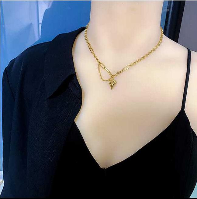Collar con personalidad de amor europea y americana para mujer, estilo retro hip hop, sin decoloración, estilo nicho, cadena de clavícula elegante y moderna.