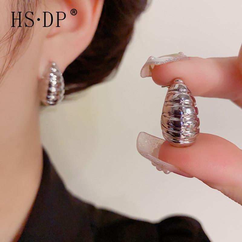 Pendientes de plata S925 con forma de gota de metal, con personalidad y personalidad, de temperamento simple, estilo Joker, con un dulce y fresco viento frío, al por mayor
