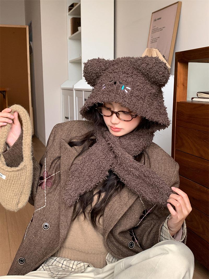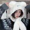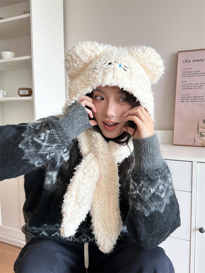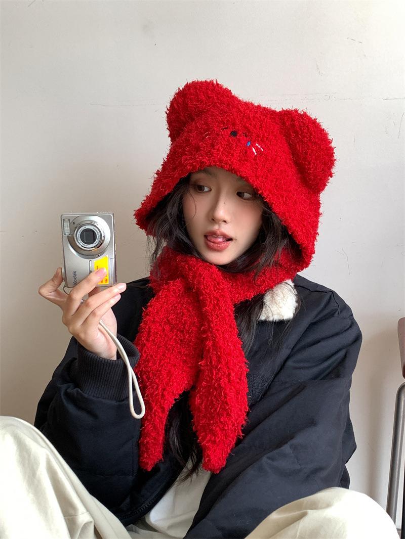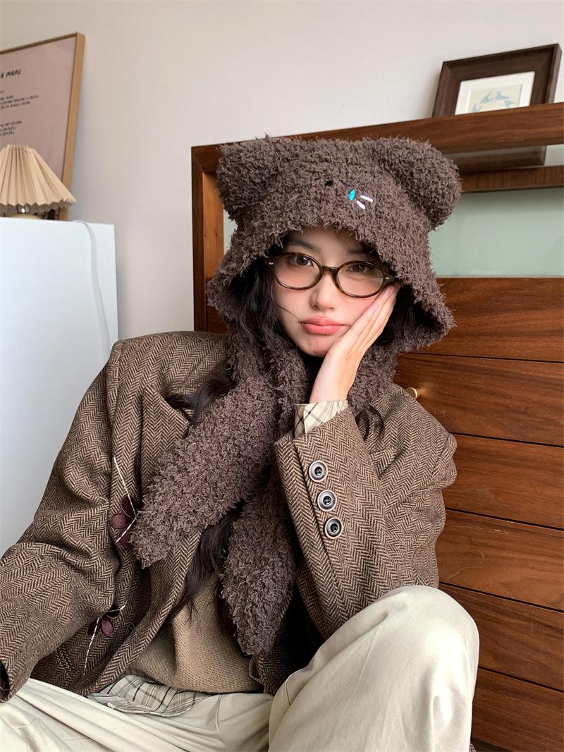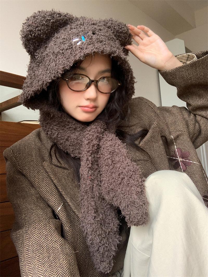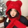 Lindo Gorro de Felpa con Orejas de Oso y Bufanda para Mujer Invierno Protección Facial y de Orejas Pequeñas Cálido a Prueba de Frío Bufanda con Capucha