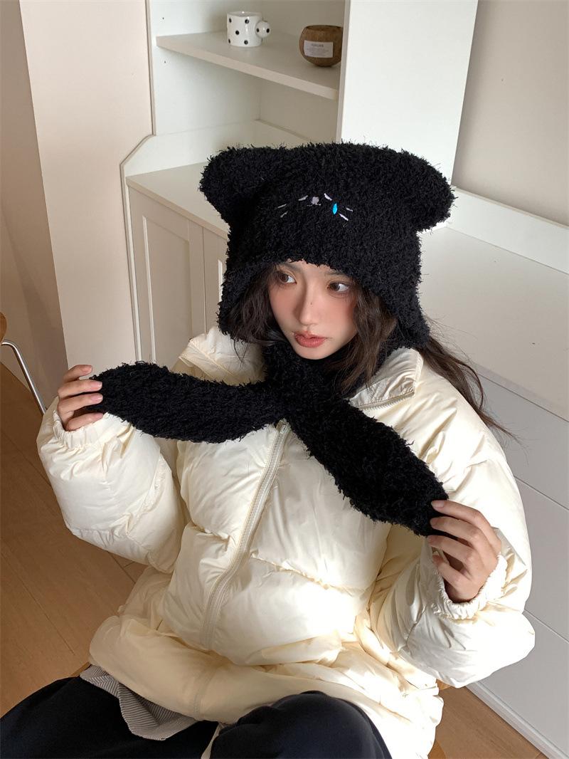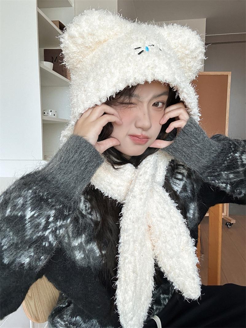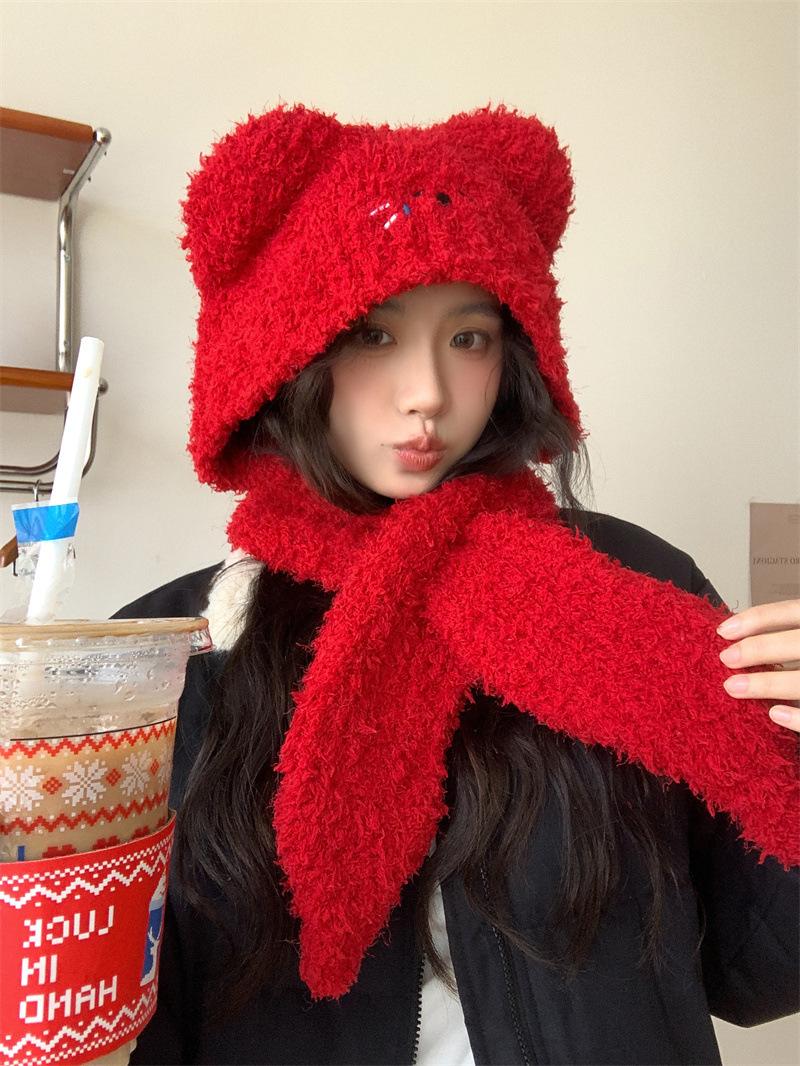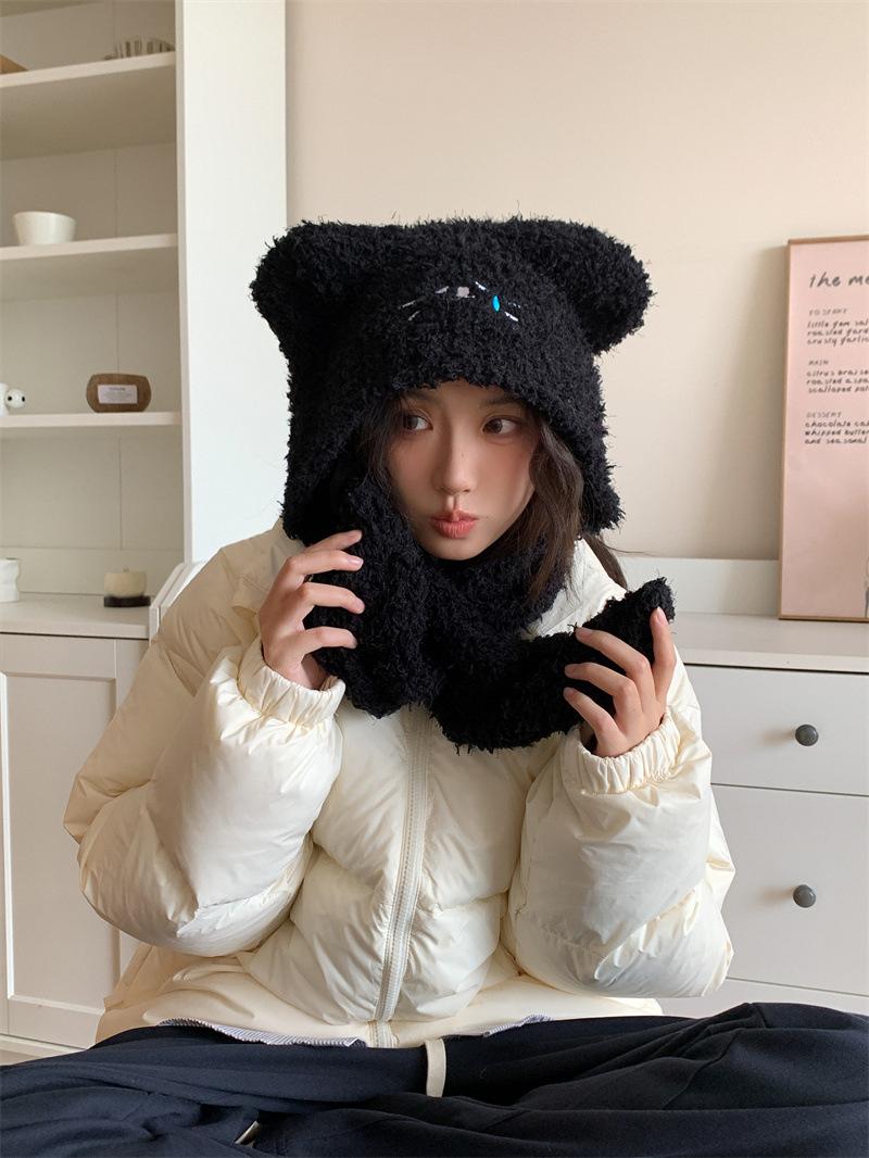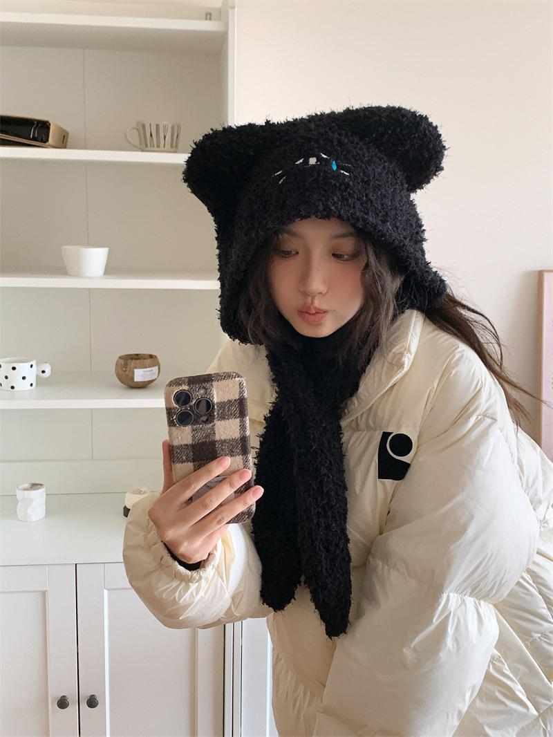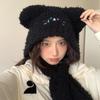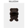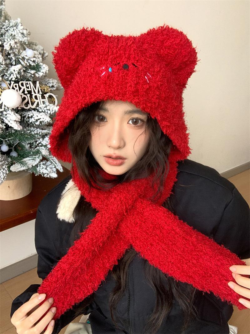 Lindo Gorro de Felpa con Orejas de Oso y Bufanda para Mujer Invierno Protección Facial y de Orejas Pequeñas Cálido a Prueba de Frío Bufanda con Capucha