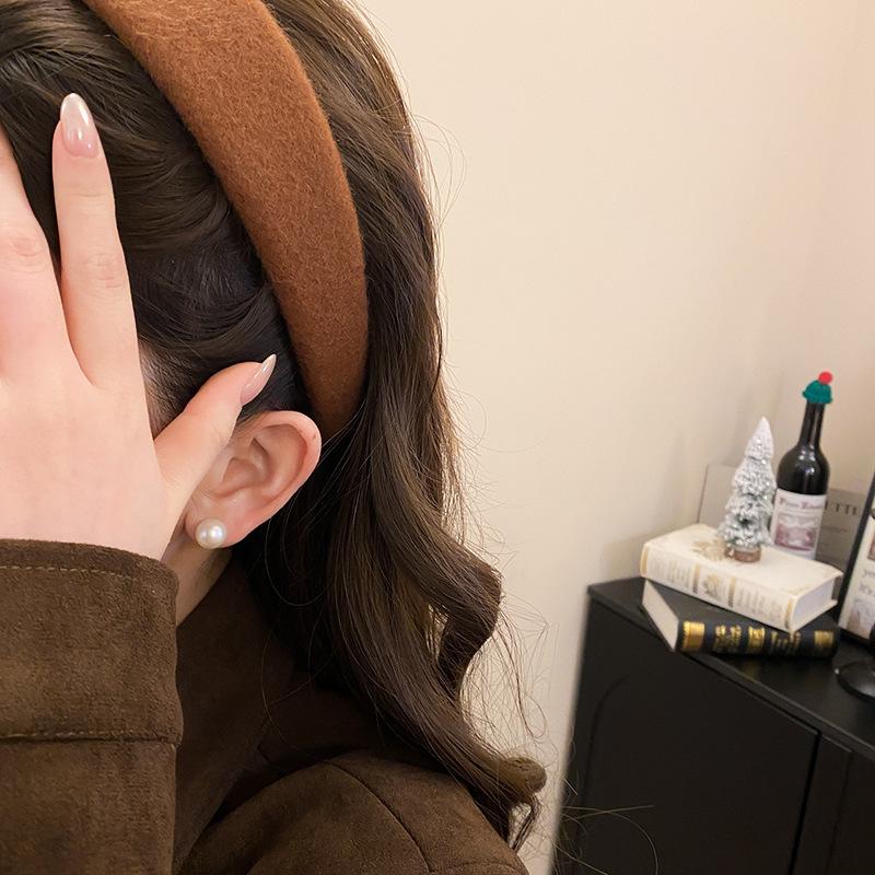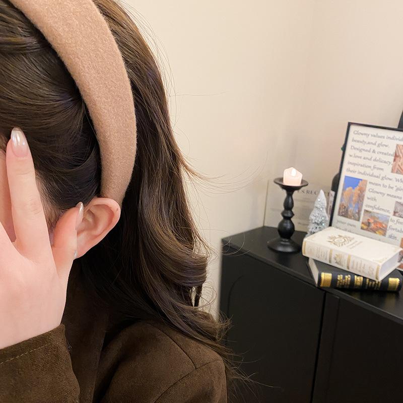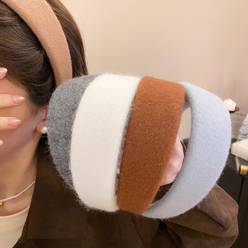 Diadema de felpa simple de color sólido con forma de cráneo alto para otoño e invierno, diadema de alta gama de nicho, accesorios para el cabello de moda coreana que combinan con todo, tocado