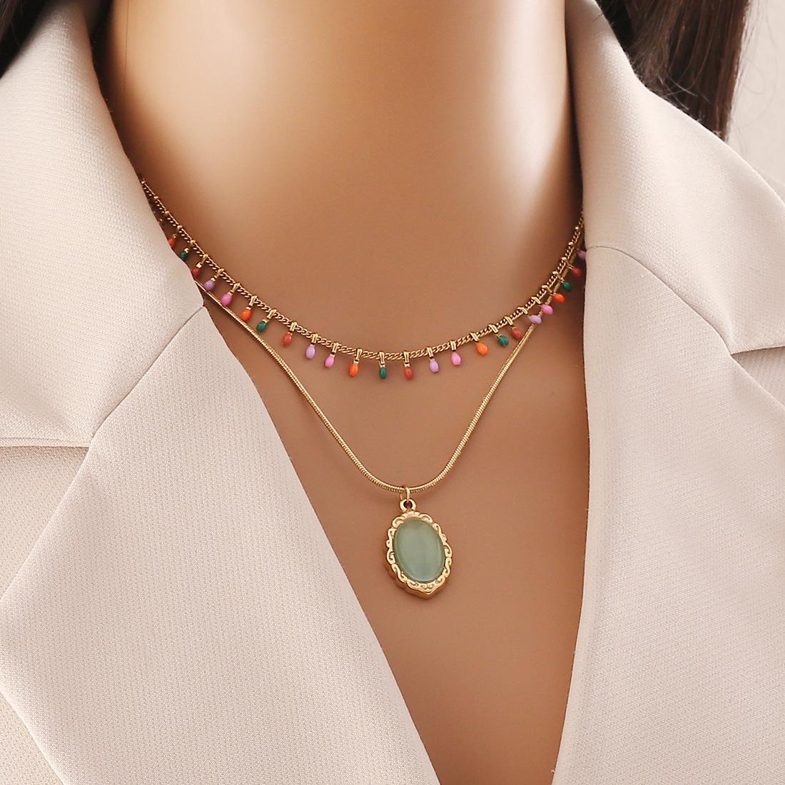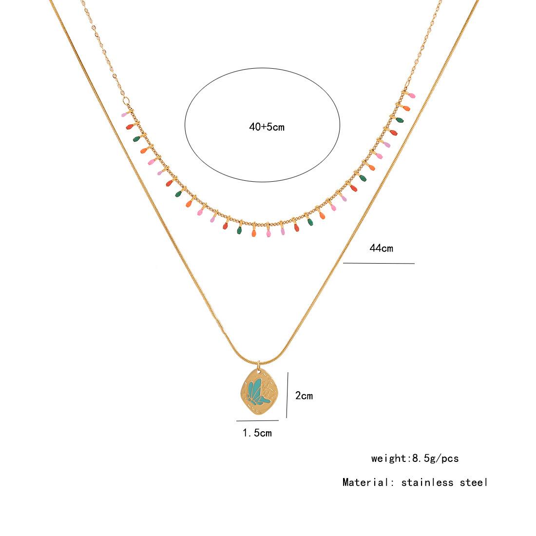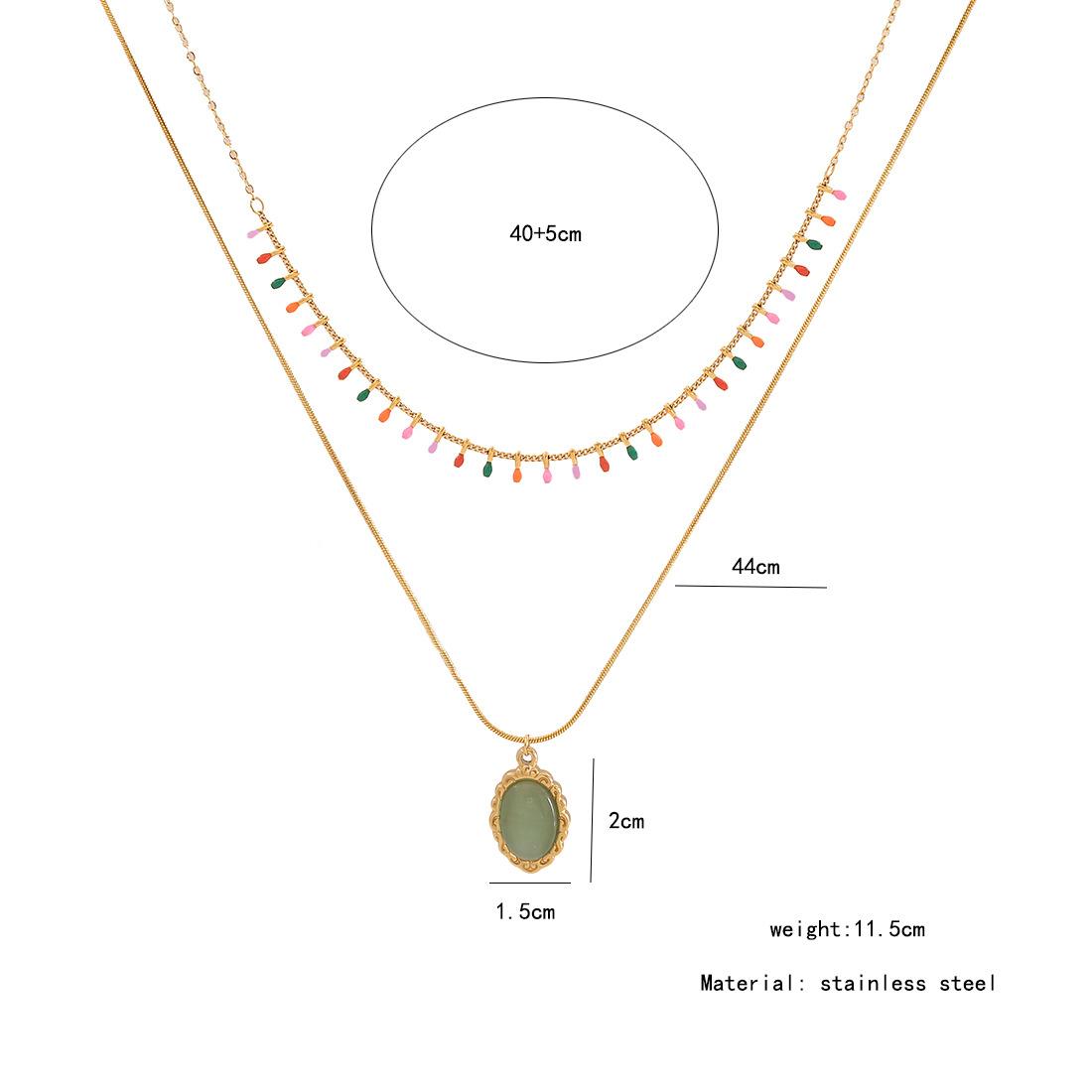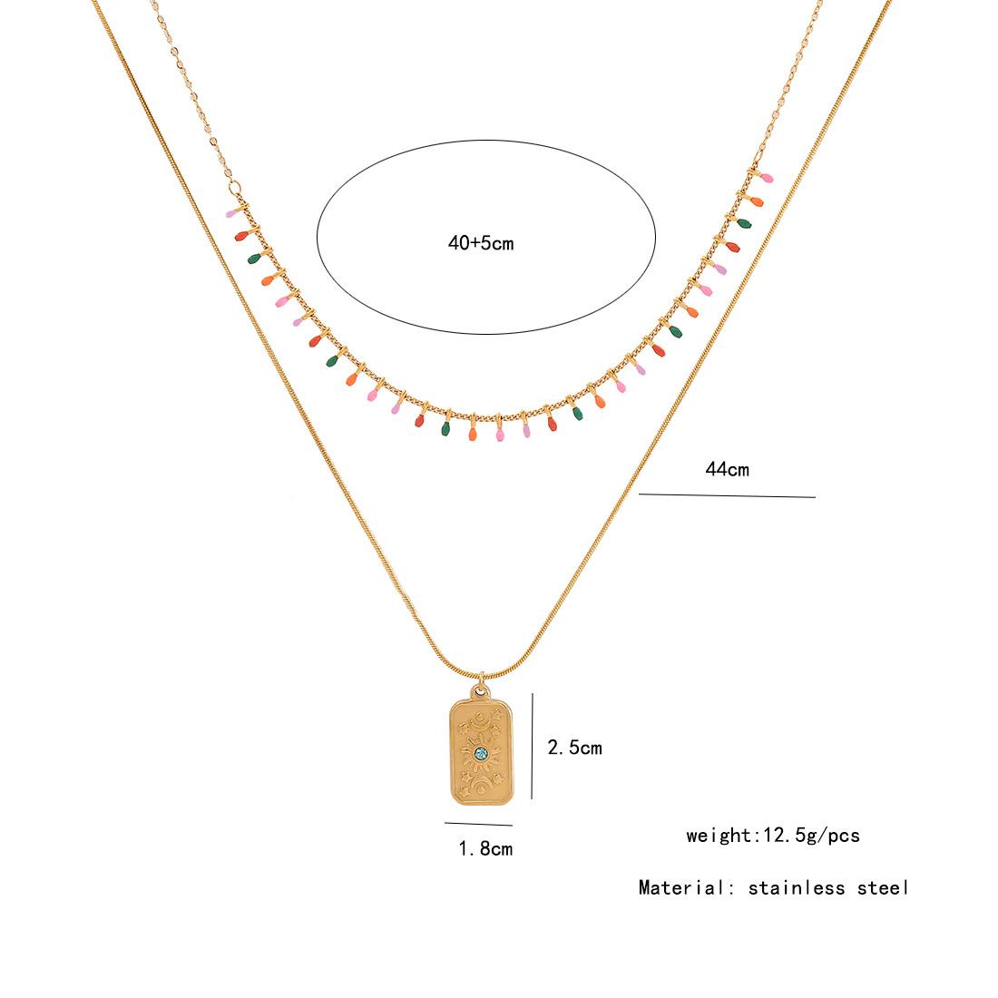 [Ice Meng] Collar de gota de agua de color, geométrico, de metal, acero inoxidable, doble cadena, joyería europea y americana, nueva N159