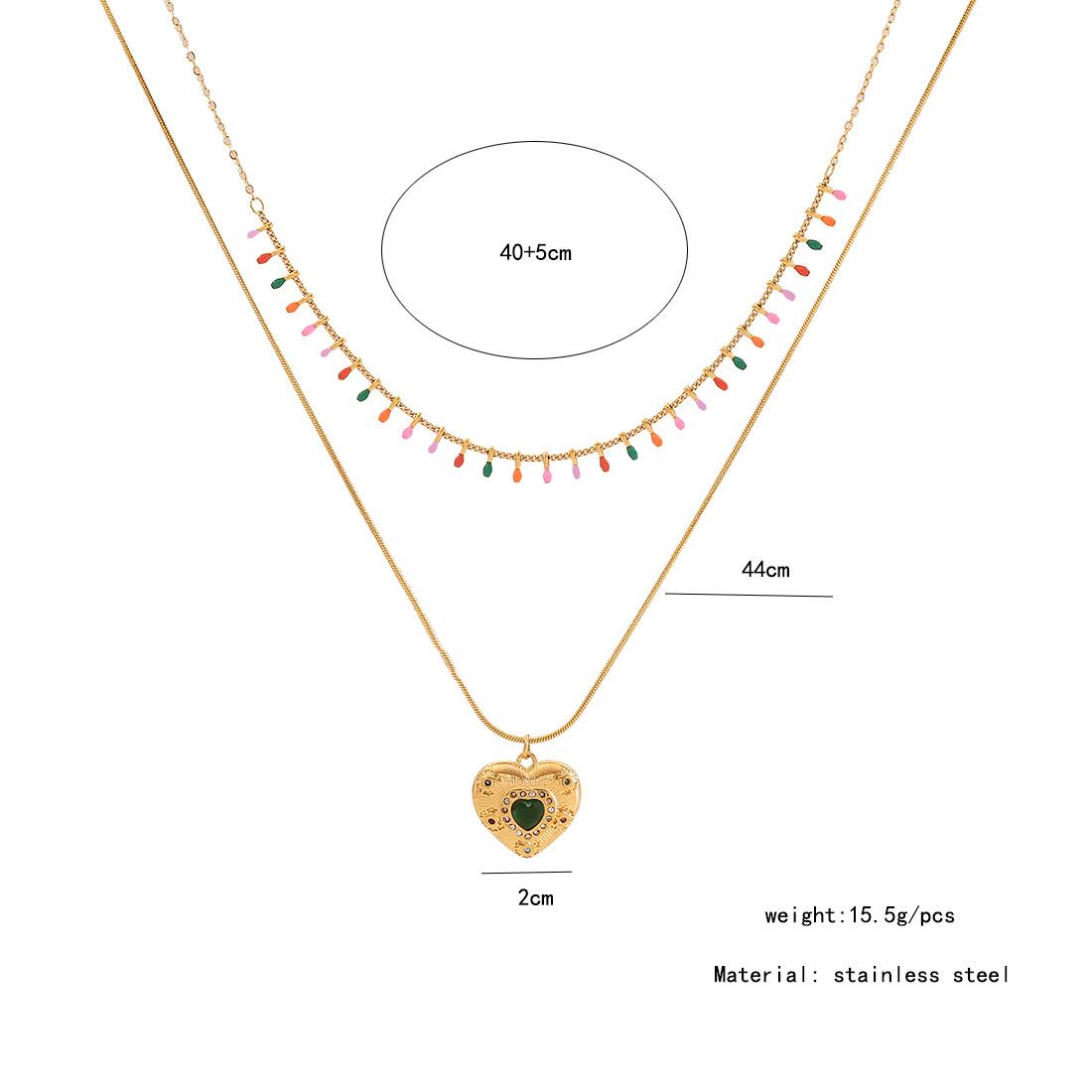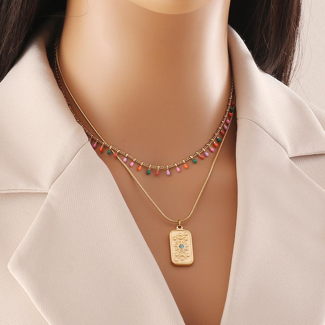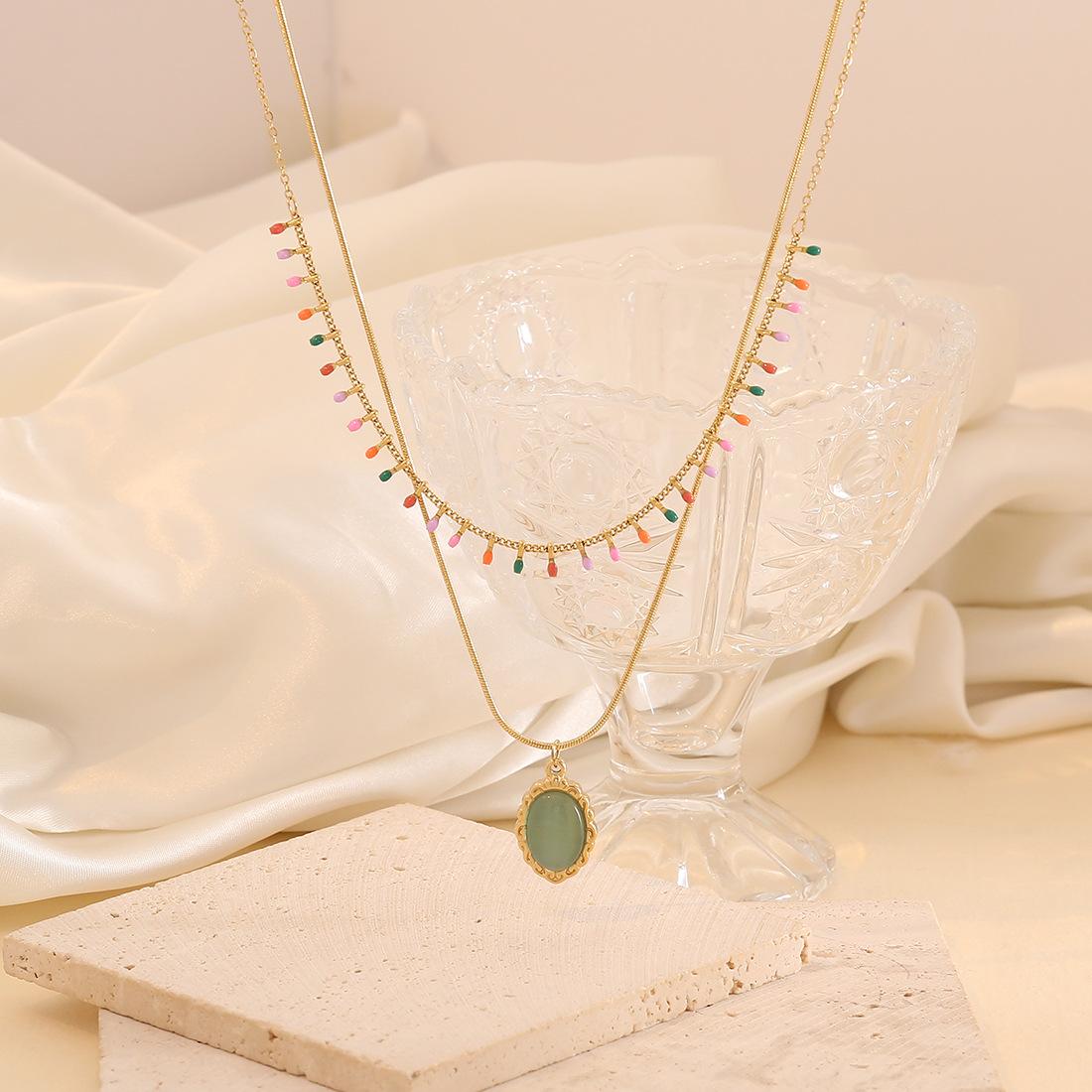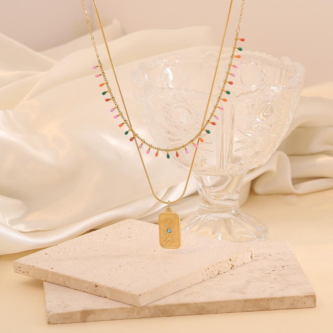 [Ice Meng] Collar de gota de agua de color, geométrico, de metal, acero inoxidable, doble cadena, joyería europea y americana, nueva N159