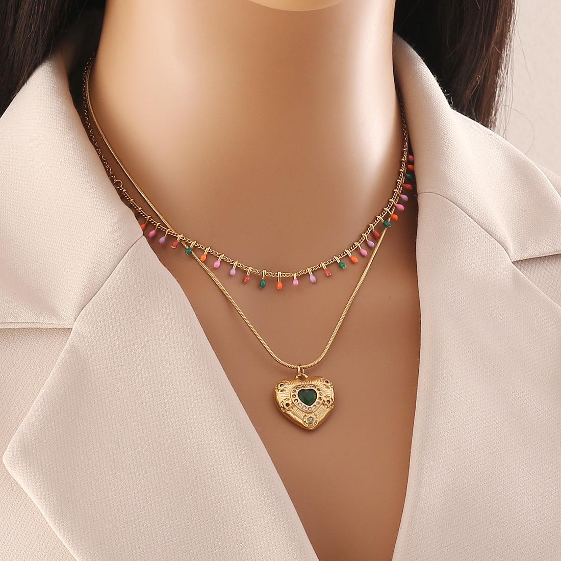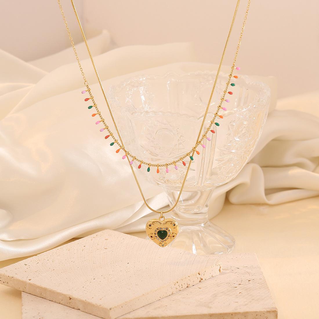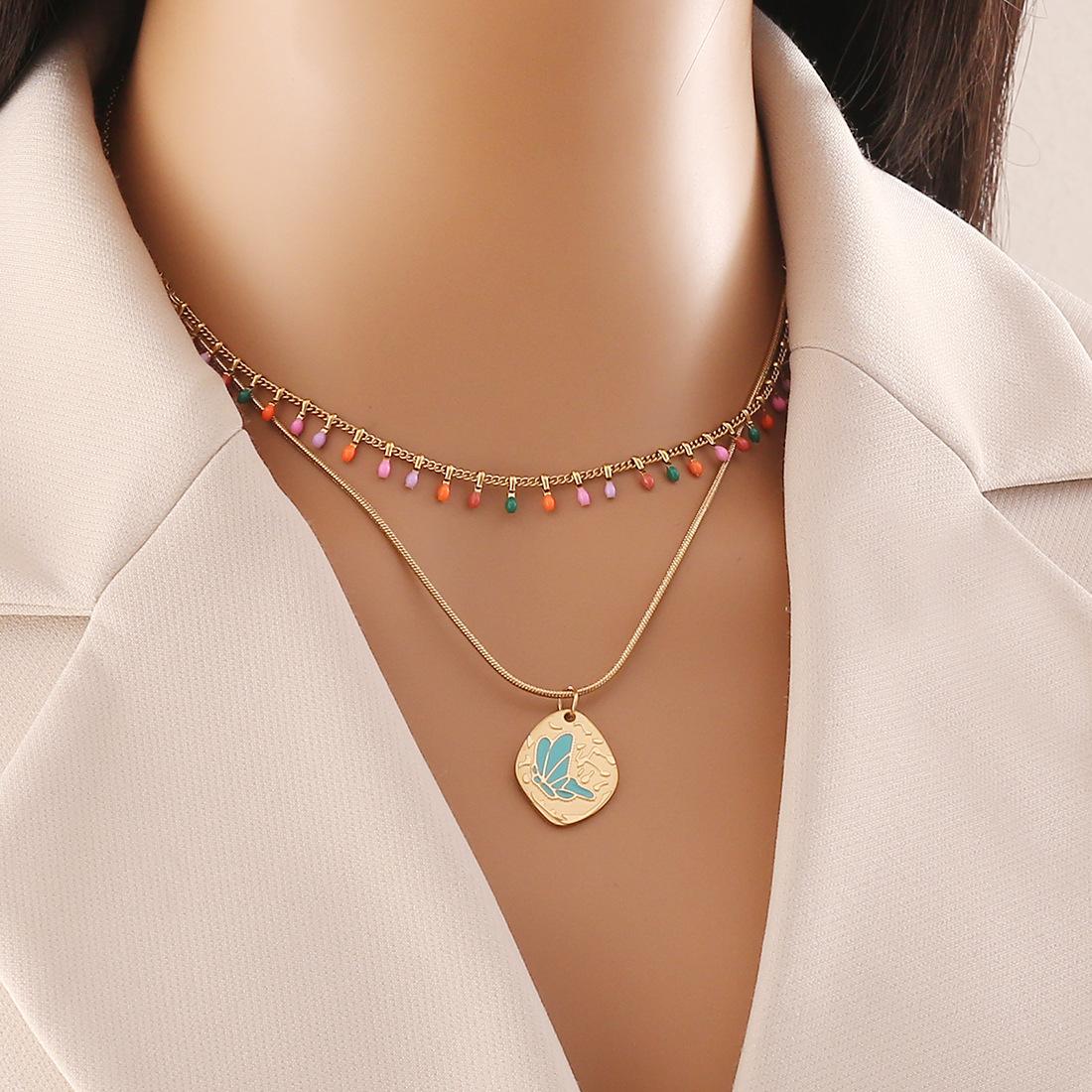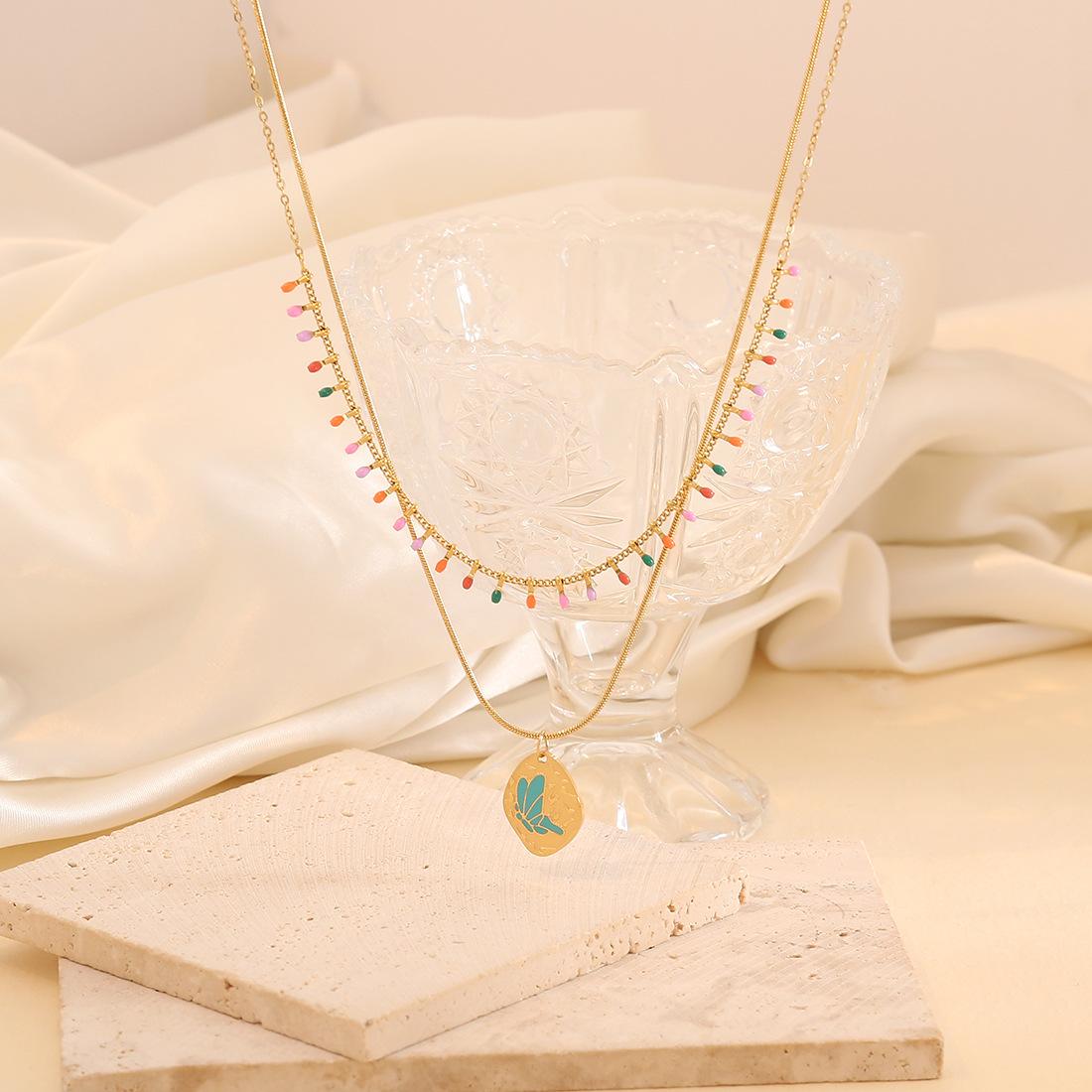[Ice Meng] Collar de gota de agua de color, geométrico, de metal, acero inoxidable, doble cadena, joyería europea y americana, nueva N159