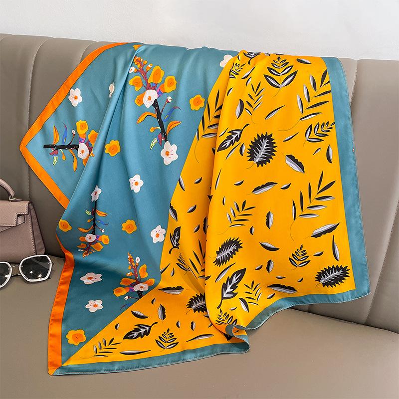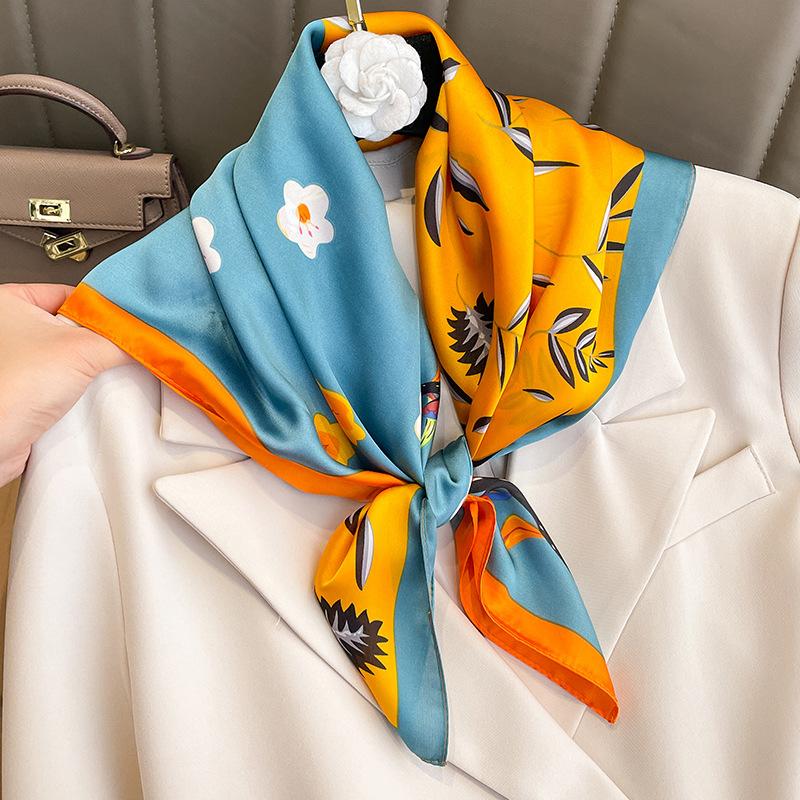 Pañuelo cuadrado pequeño de moda con estampado de primavera y otoño de estilo coreano, pañuelo de seda para mujer, pañuelo decorativo, pañuelo para el cuello, banda para el pelo, nueva bufanda con lazo.