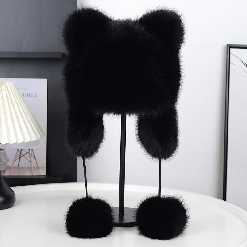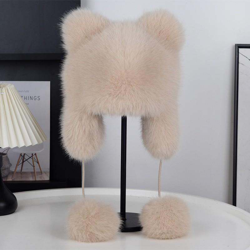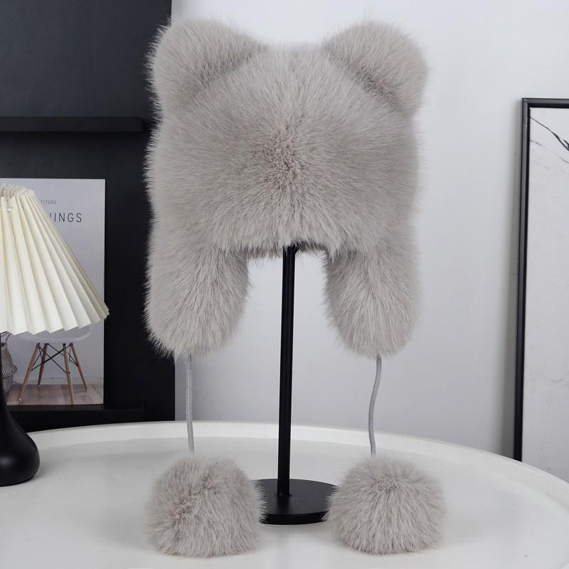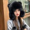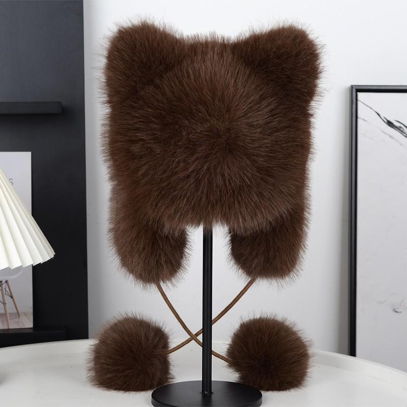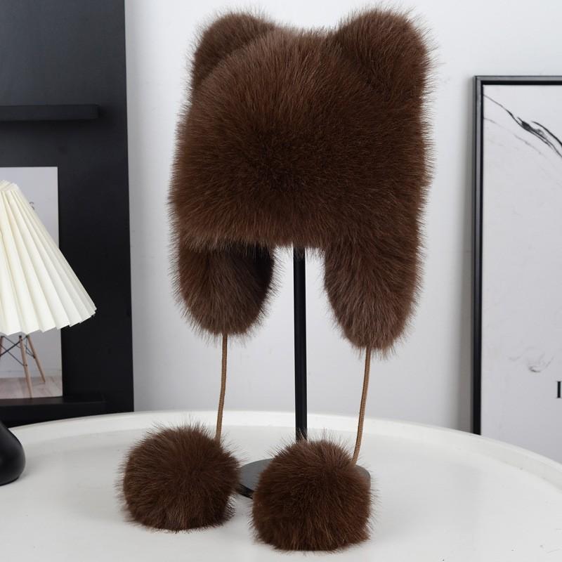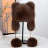 Gorro pequeño de mapache para mujer, otoño e invierno, muestra la cara pequeña, engrosado, cálido, resistente al viento, sombrero Lei Feng, sombrero con protección para las orejas, sombrero de oso grande