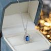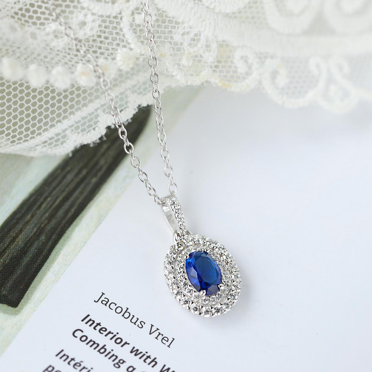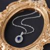 Collar clásico europeo y americano con incrustaciones de circonita azul ovalada alta, colgante de temperamento de estilo real, cadena de clavícula para mujer