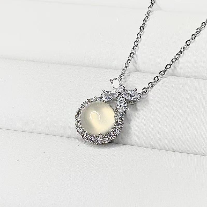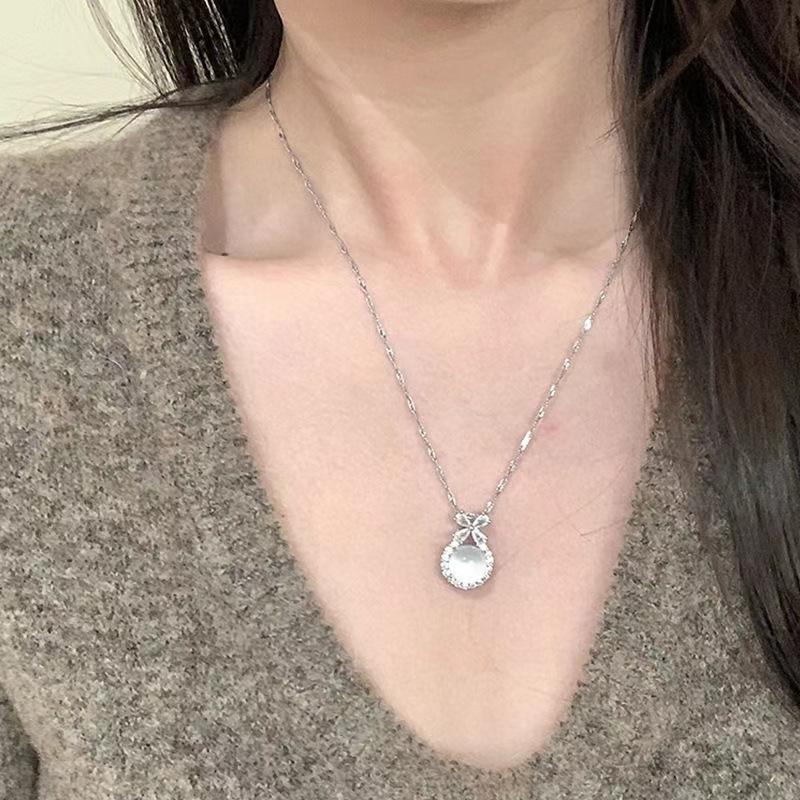 Collar elegante de estilo nuevo con lazo de circonita blanca y calcedonia, cadena de clavícula con flores chinas de alta gama, combinable con todo para mujer.