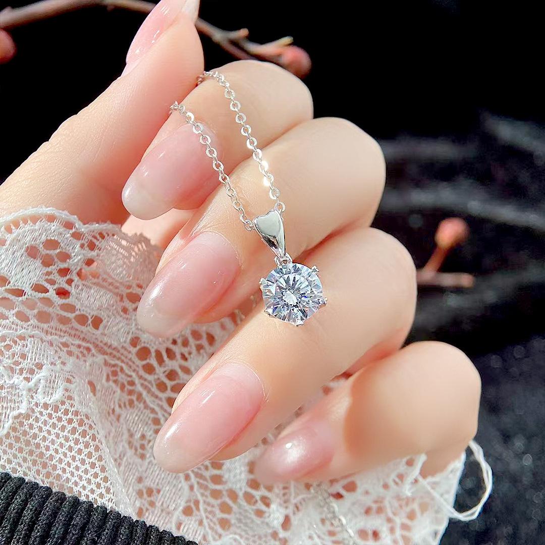 Collar con incrustaciones de seis garras de plata esterlina S925 para mujer, súper ligero, de lujo, versión coreana simple de la nueva cadena de clavícula de moda que combina con todo, al por mayor