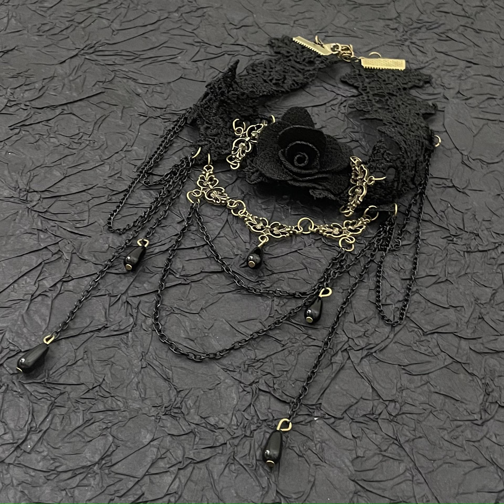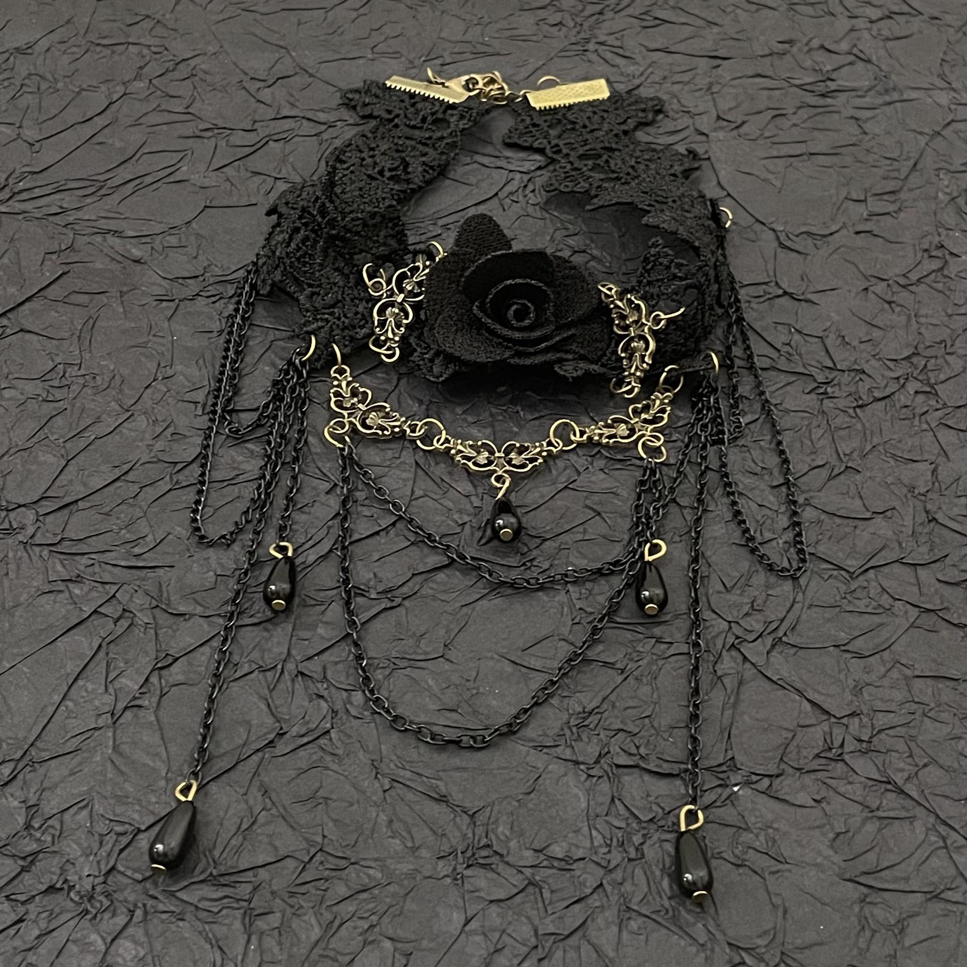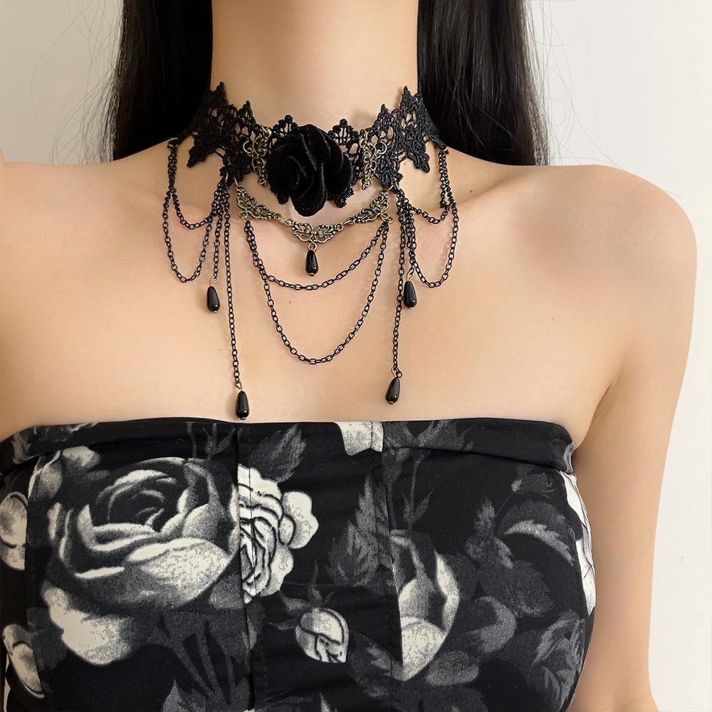 Collar Choker de Encaje de Especias Diablo Flor Vintage Gótico Gotas de Agua Borla Cadena Clavícula Nicho Distintivo Cadena de Cuello