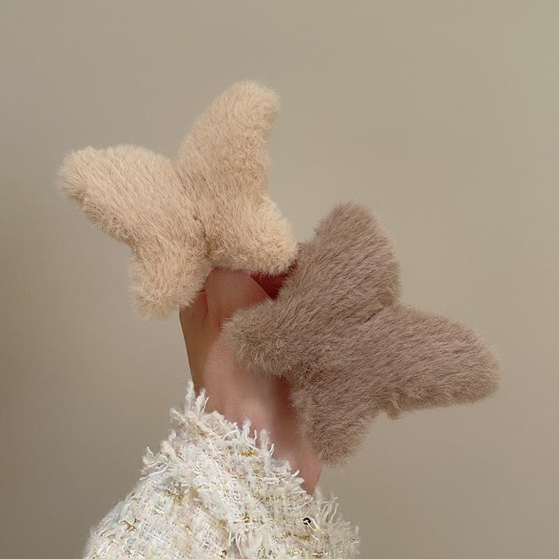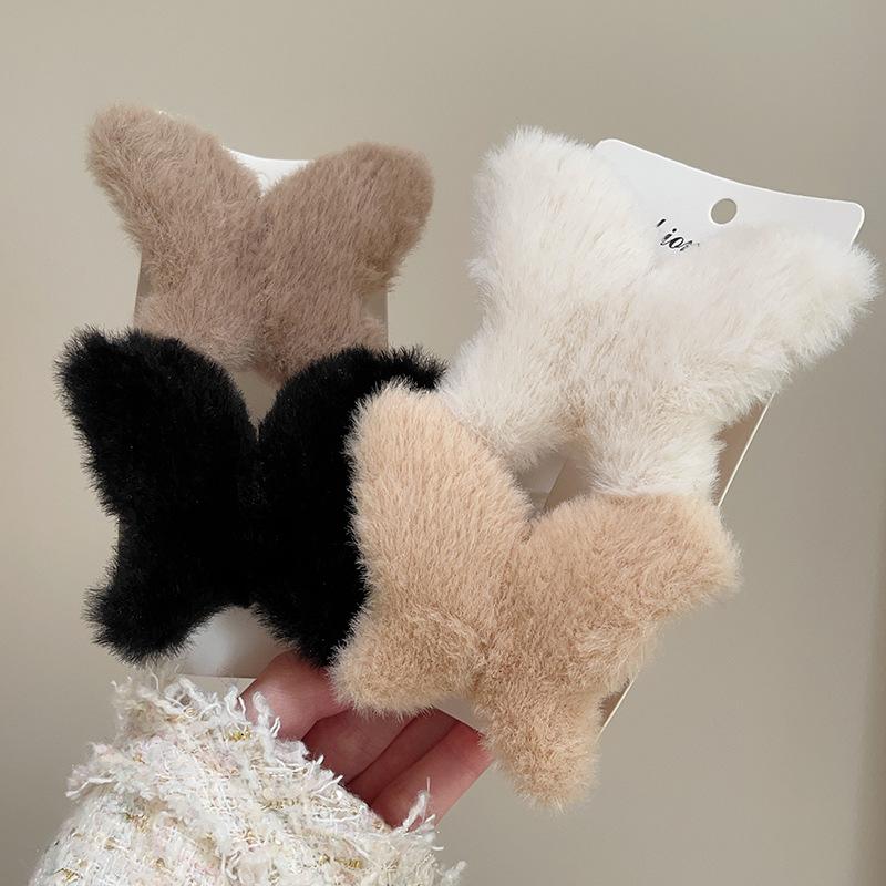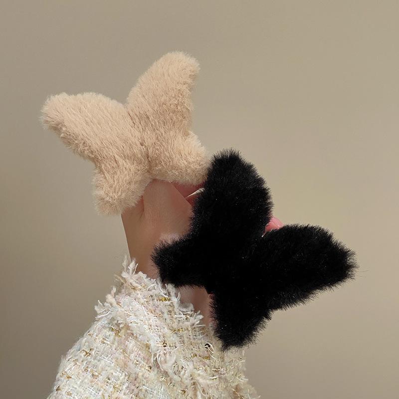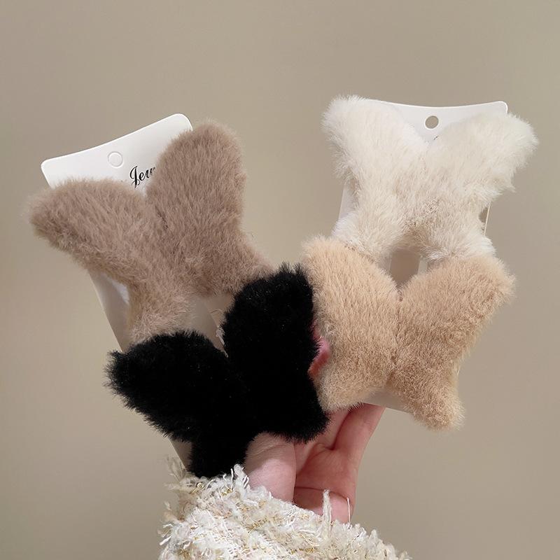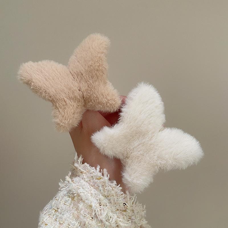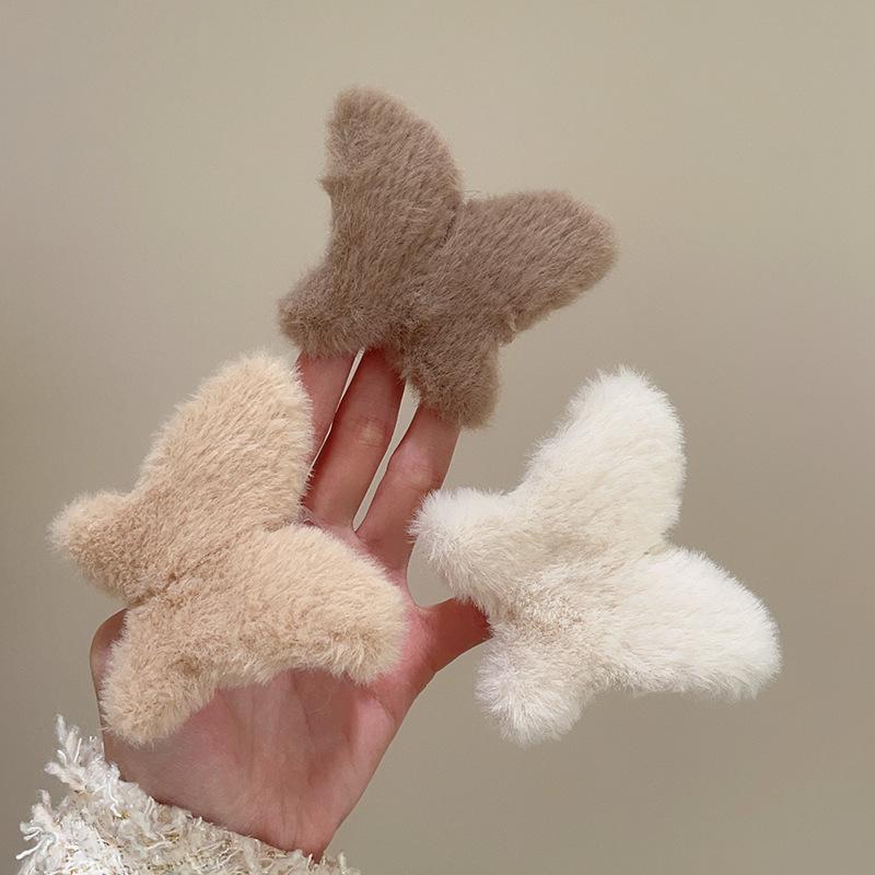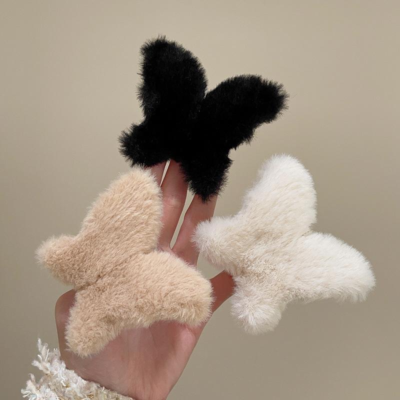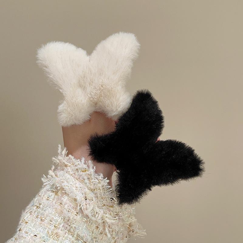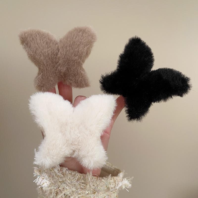 Clip de mariposa de peluche de otoño e invierno, grande, lindo, para la parte posterior de la cabeza, clip de tiburón, clip de pelo de sentido avanzado, clip para el cabello, tocado