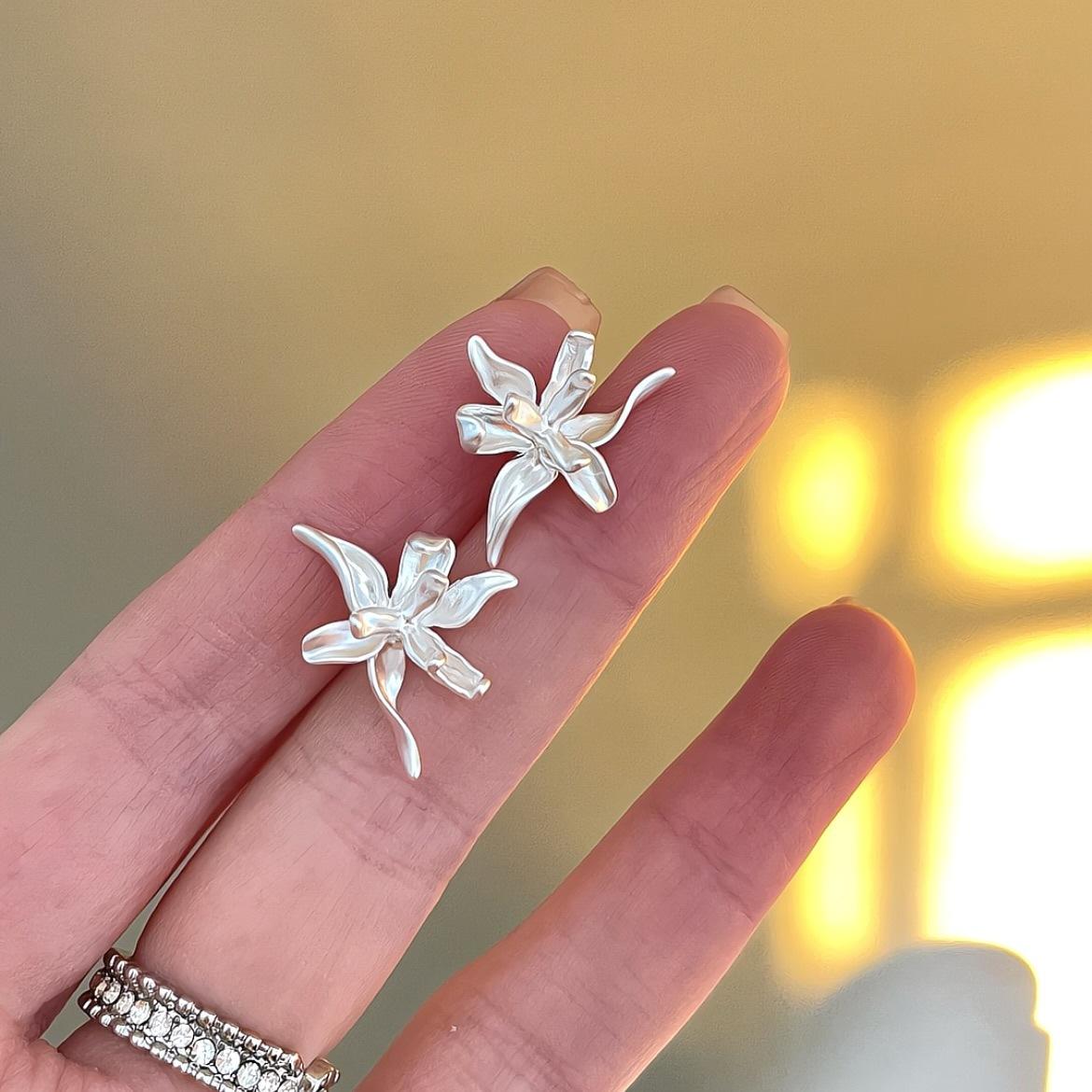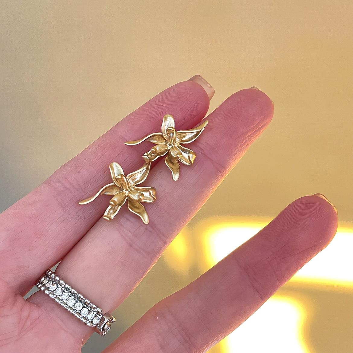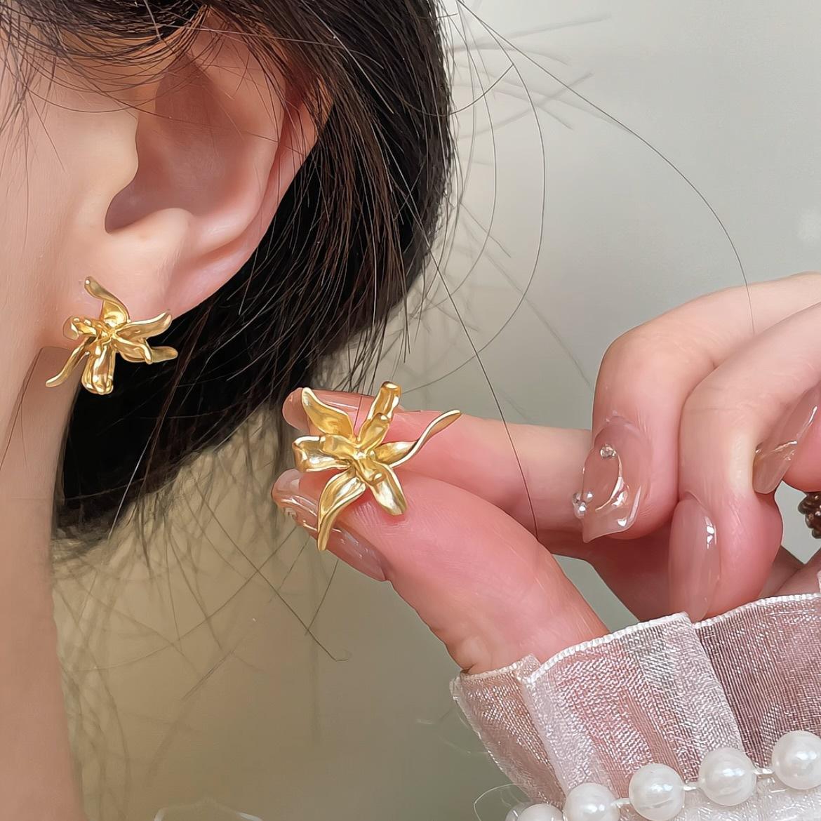 Pendientes de flor de iris con diseño de hada francesa retro de metal mate, elegantes y de alta gama para mujer.