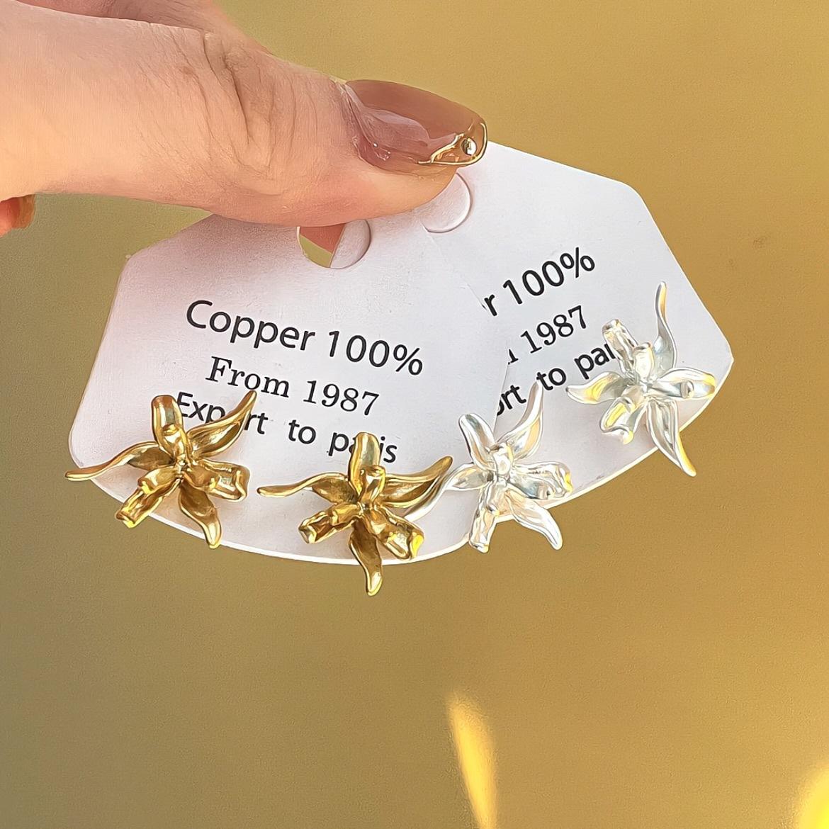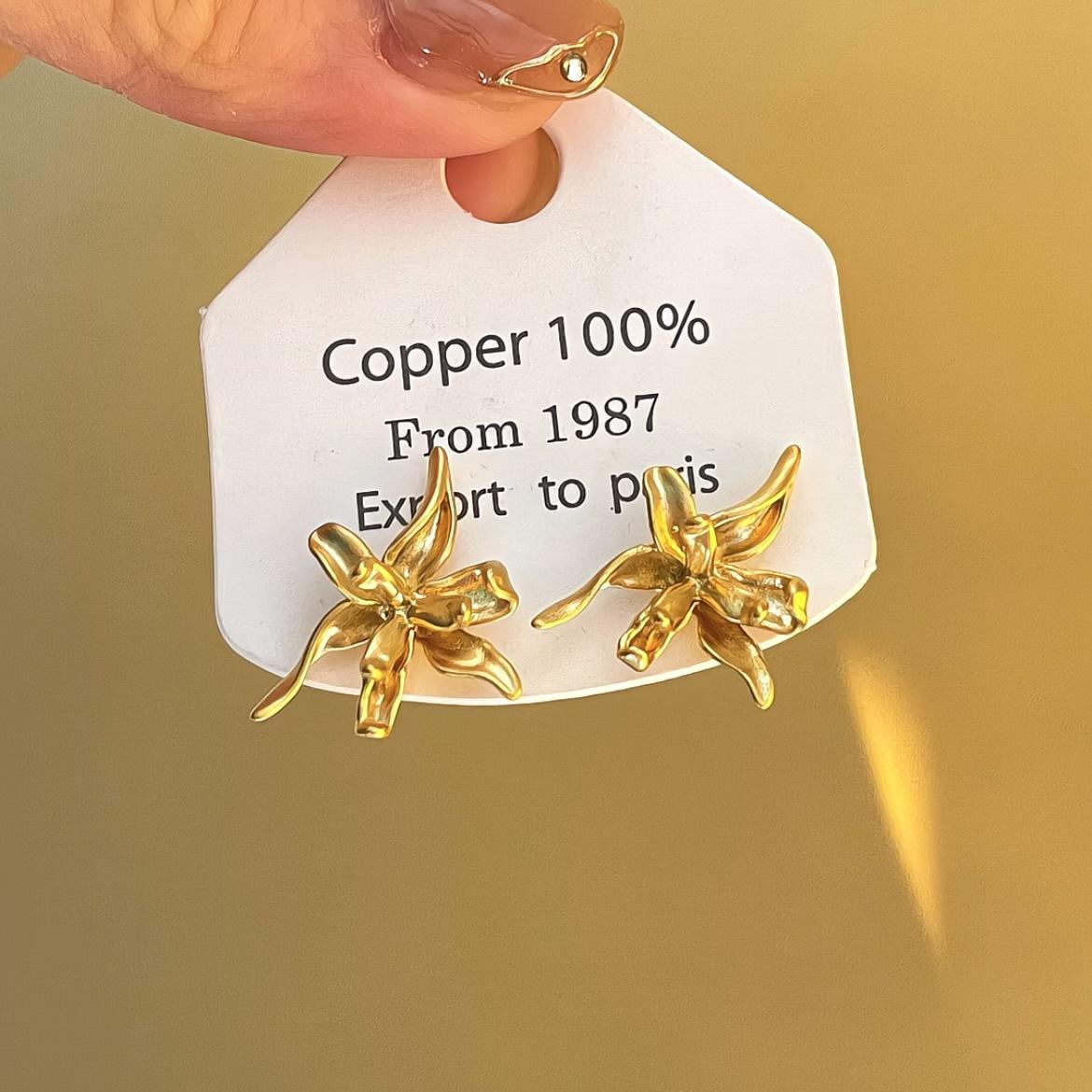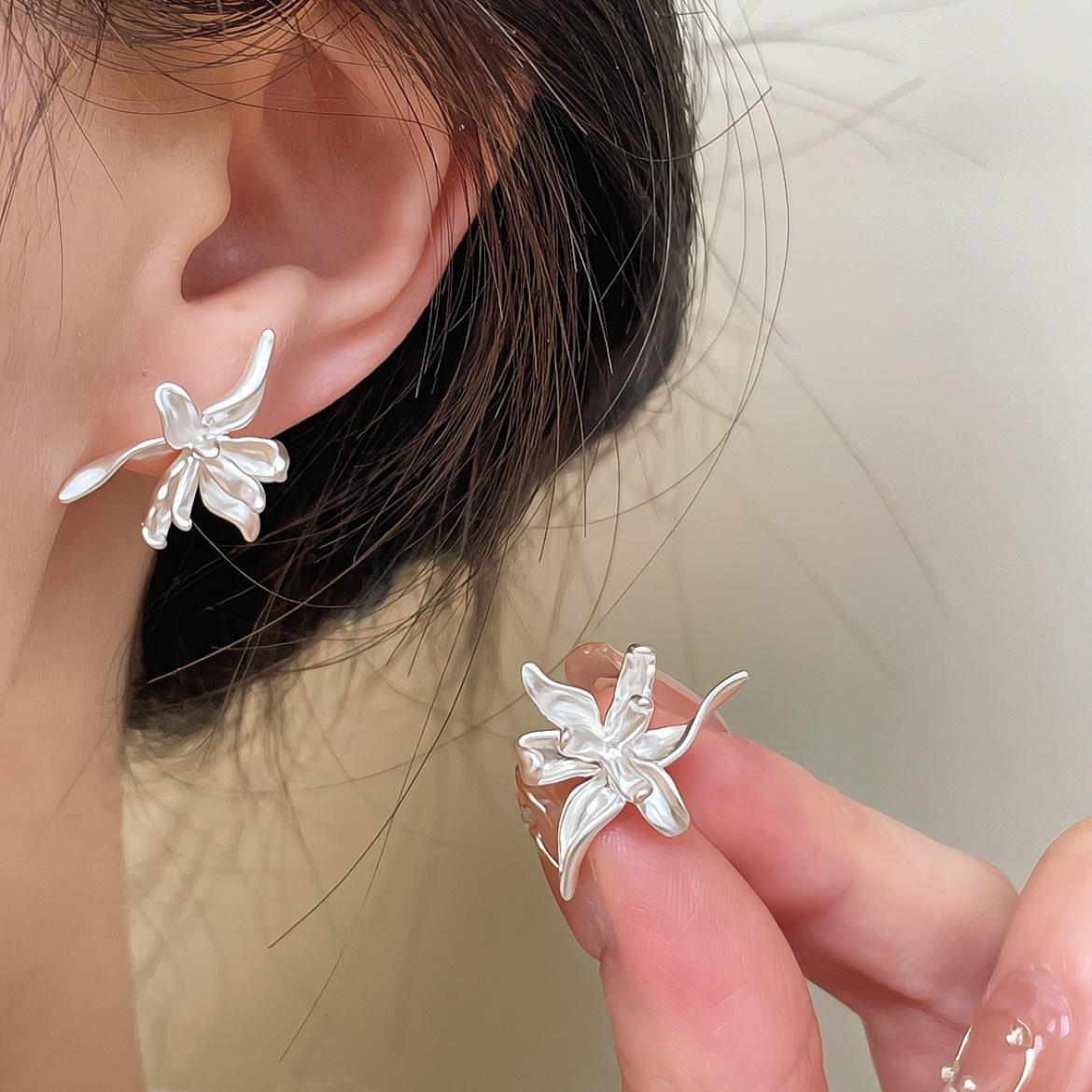 Pendientes de flor de iris con diseño de hada francesa retro de metal mate, elegantes y de alta gama para mujer.