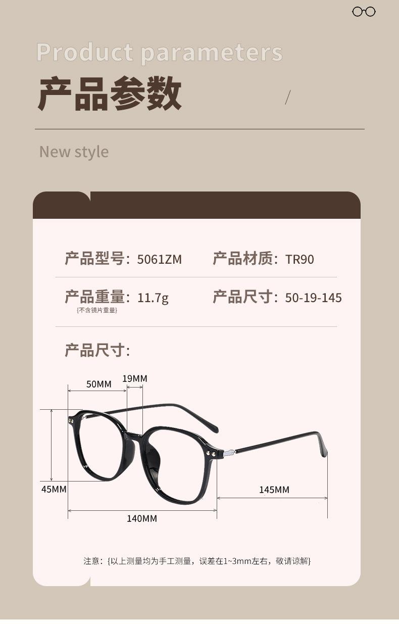 Las gafas de miopía TR para mujer se pueden equipar con monturas de gafas pequeñas con cara blanca ultraligera 5061ZM, gafas Danyang al por mayor