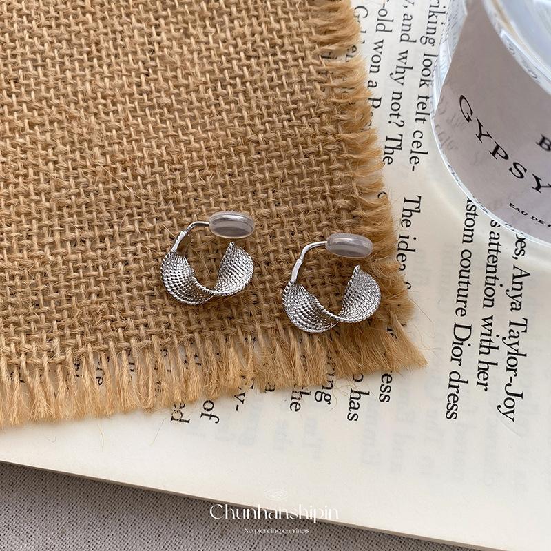 Fever same silver geometric circle texture ear clip
