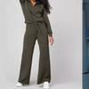 Traje de pantalón informal de manga larga con cremallera de color sólido para mujer, moda europea y americana, combina con todo, primavera 2023