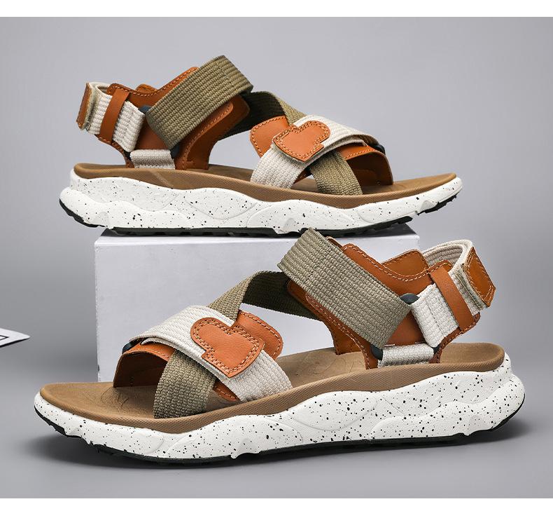 Sandalias Transpirables de Piel de Vacuno Verano 2025 Nuevos Zapatos de Playa de Suela Gruesa para Exterior Antideslizantes Romanas Frescas Deportivas para Hombre