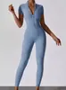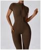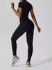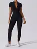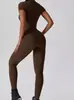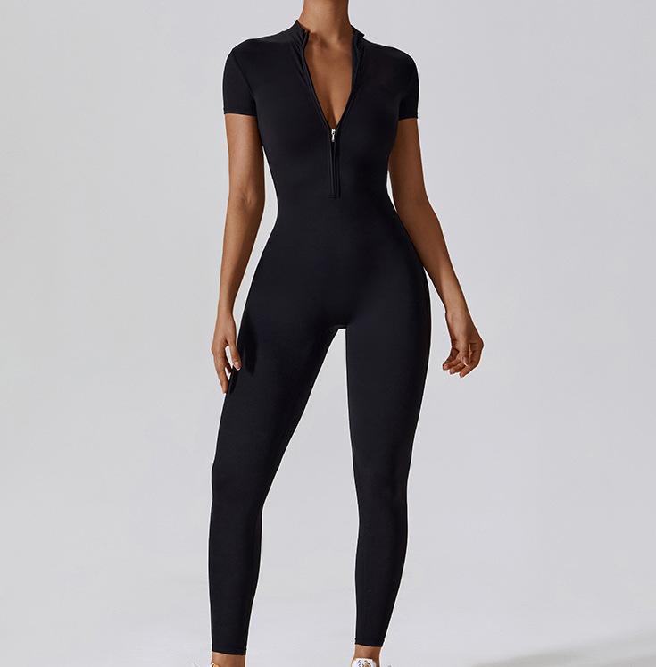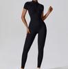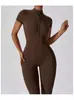 2024 Cierre Manga Corta Yoga Desnudo Tejido Carmín Ropa Exterior para Mujer Fitness Deportes Ajustado de Una Pieza