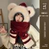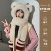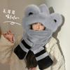 Gorro de peluche para mujer, de invierno, con orejas de oso, bufanda y guantes, de una pieza, grueso y cálido, nuevo estilo, con protección para el cuello y las orejas.