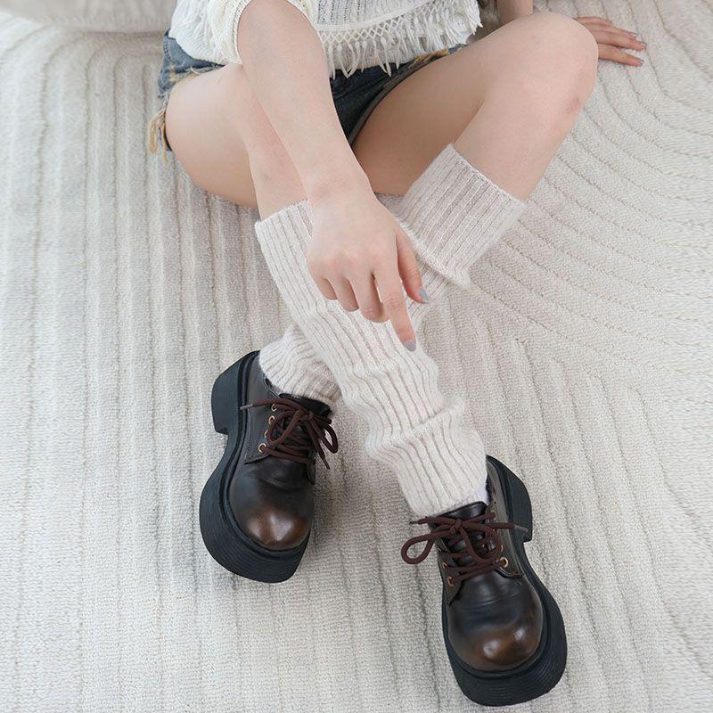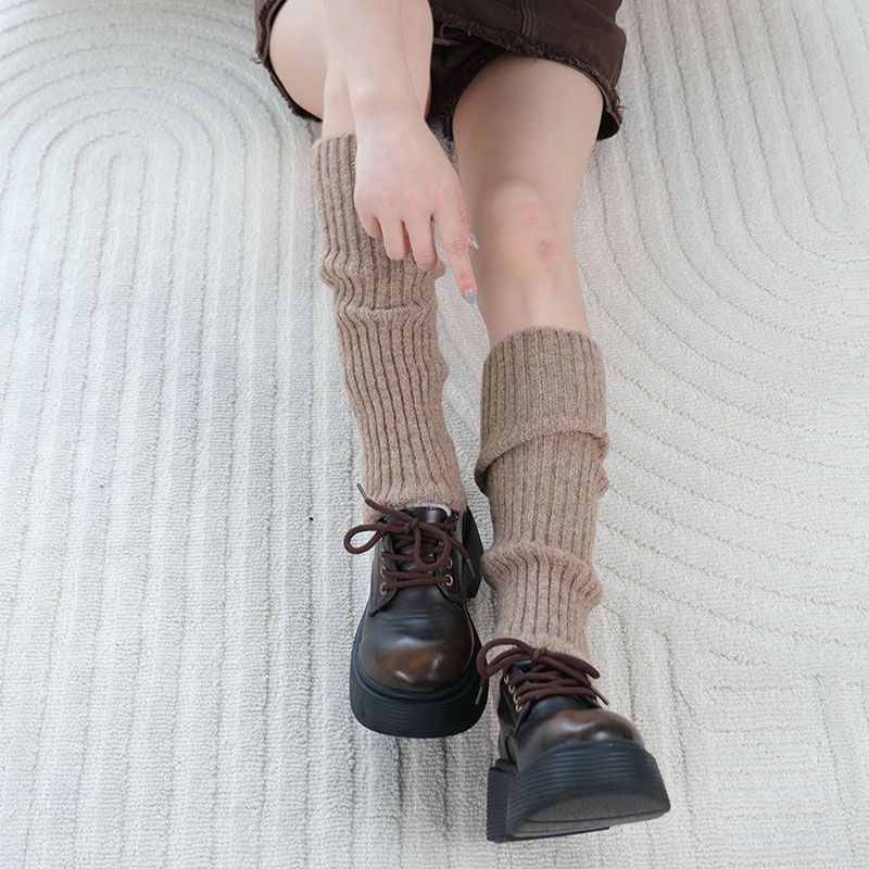 Calcetines apilados para mujer, otoño e invierno, calcetines de pantorrilla cálidos jk nude, calcetines de punto para mujer, mangas de pierna, color liso, calcetines de longitud media para mujer