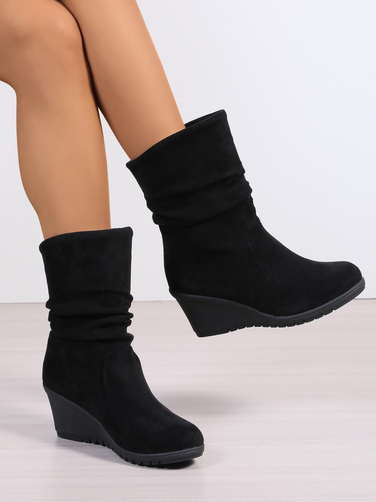 Botas Martin de talla grande con punta redonda y manga de cuña para mujer, de estilo europeo y americano, para otoño e invierno, de comercio exterior, de color liso y bajo.