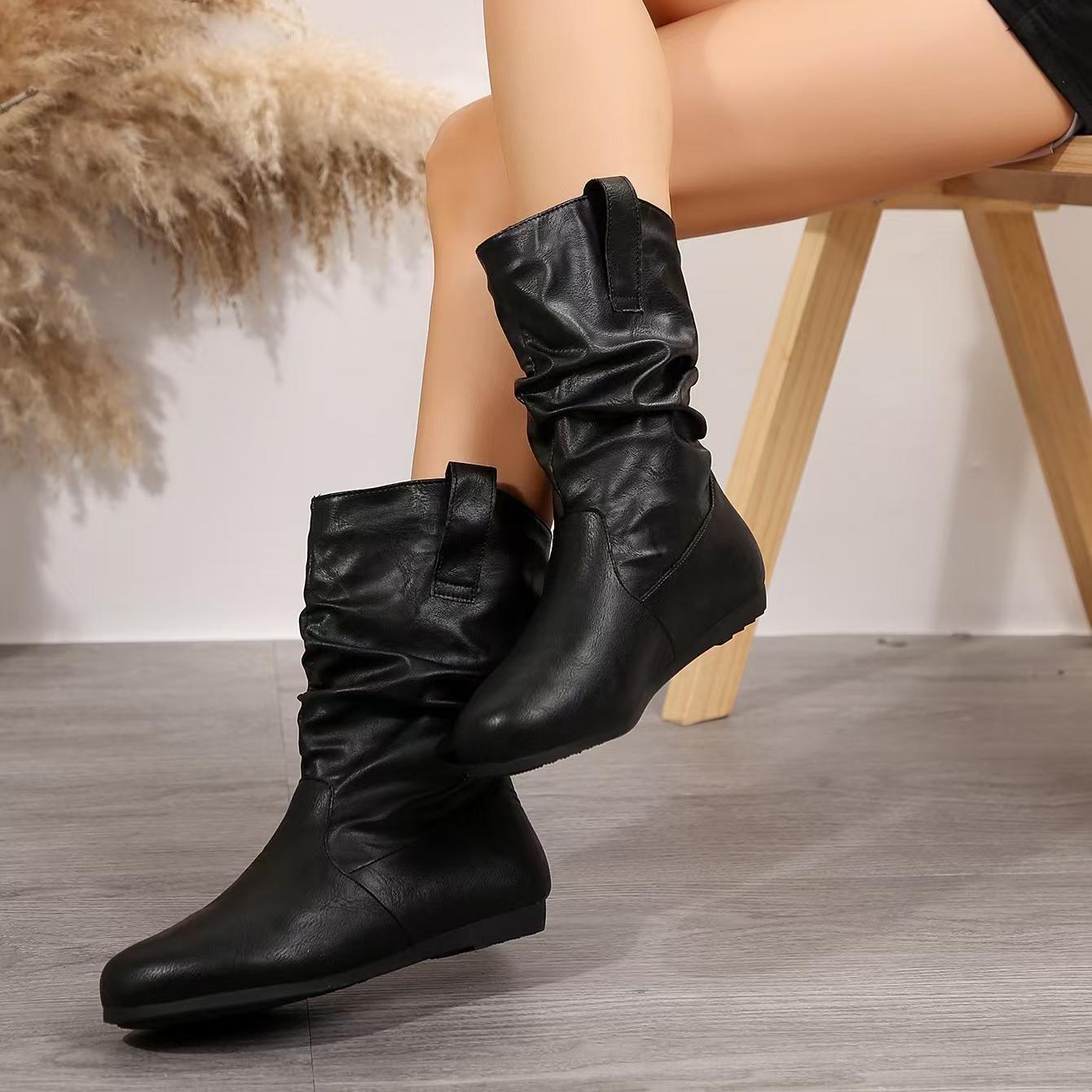 Punto 2024 Nuevo Tamaño Grande Exportación Flats Casual Botas Slip-On Moda para Mujer Cálido Pila Botas de Moda