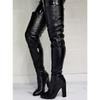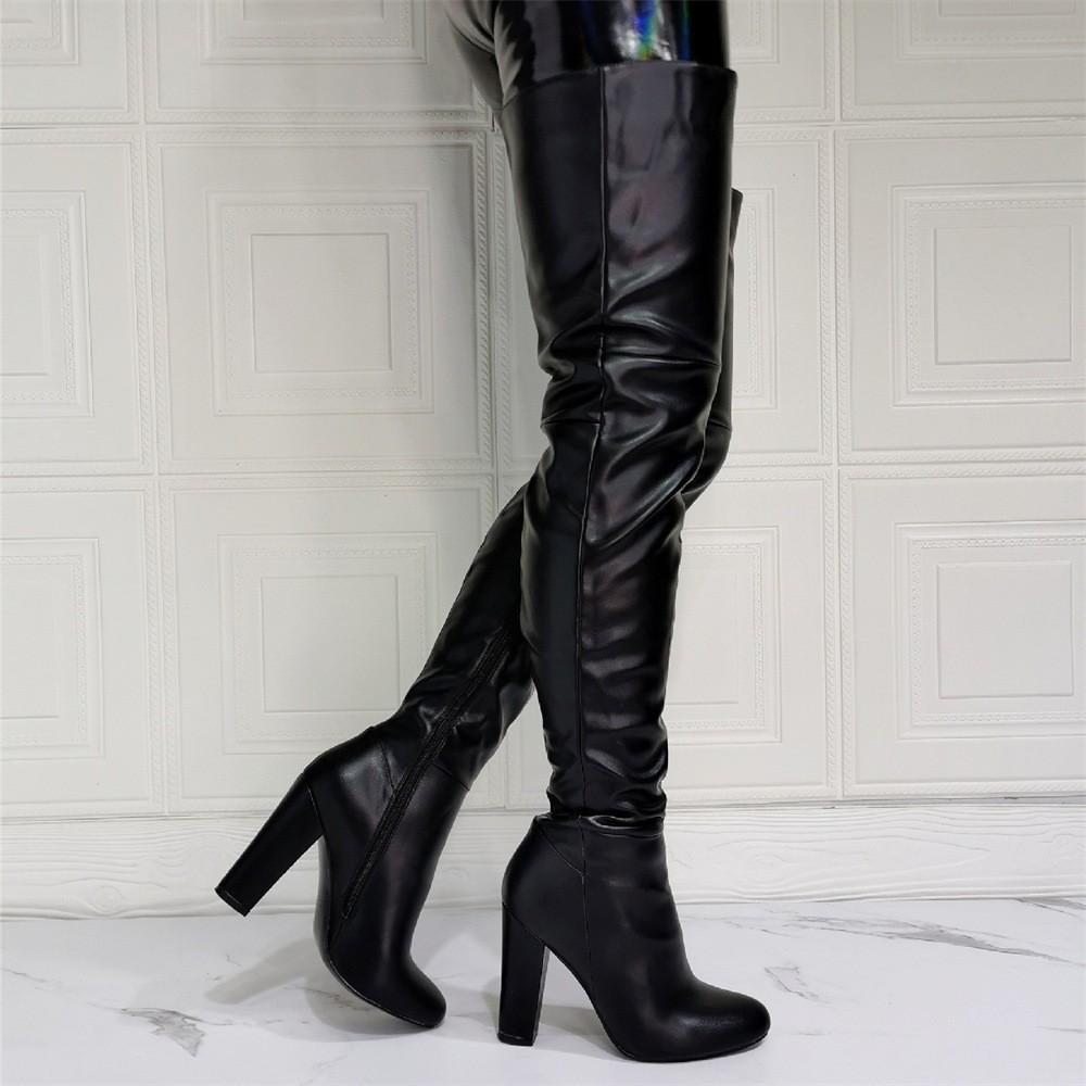 Botas largas hasta el muslo para mujer, de talla grande, con punta redonda, tacón alto grueso, cremallera lateral, sexys, de comercio exterior europeo y americano