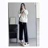 0223 Pantalones Deportivos Nuevos para Mujer Petite Otoño Combinación Versátil Casual Gris Forro Polar Pantalones Wei High Street ins Trendy