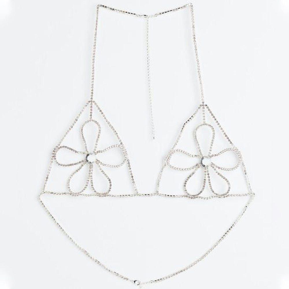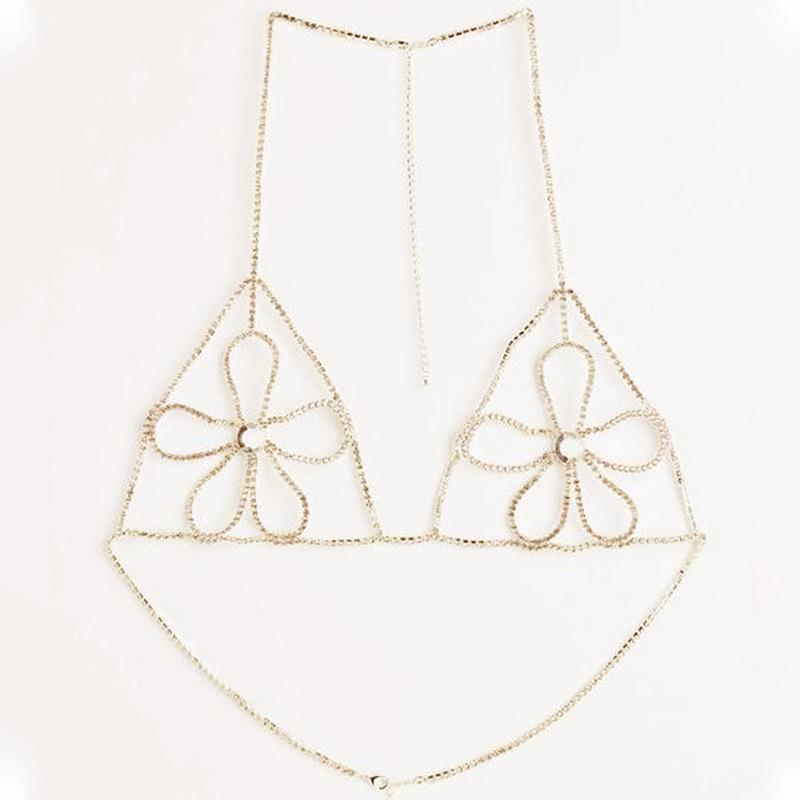 Cadena corporal sexy de AliExpress, cadena de pecho con flores, elegante y sencilla, con agujeros.