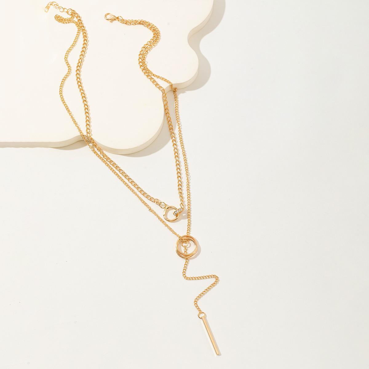 Collar con colgante de cadena de clavícula con doble anillo y borla larga, estilo europeo y estadounidense, con diseño de cadena de suéter