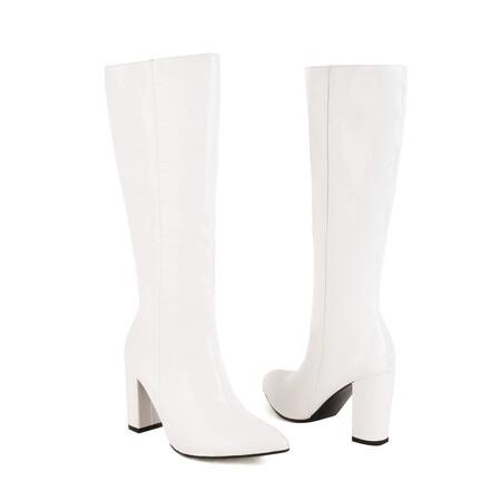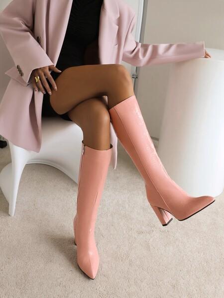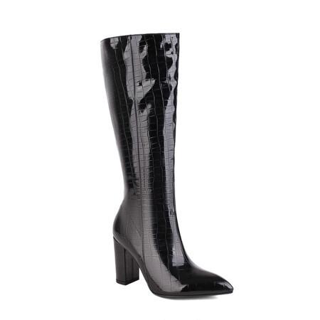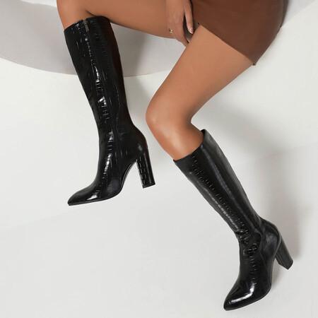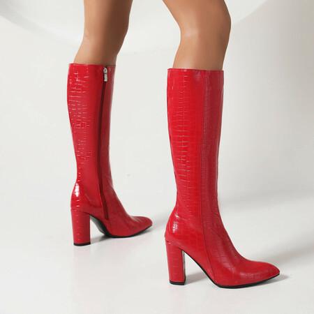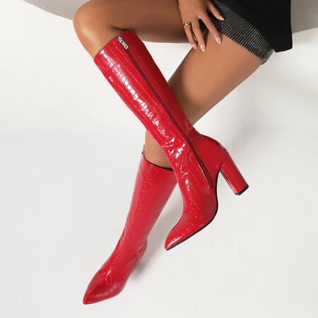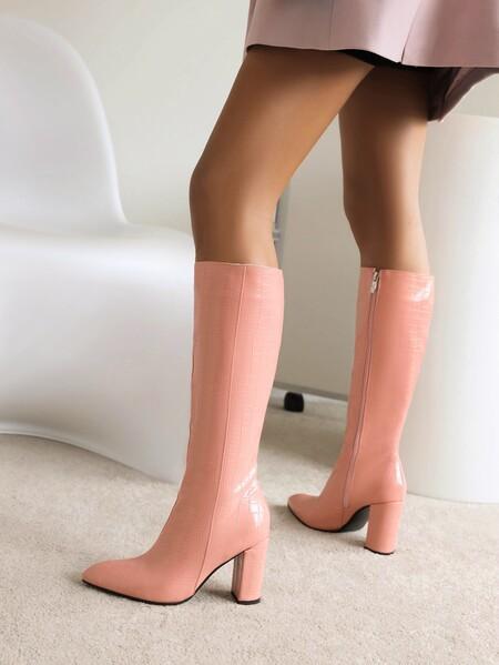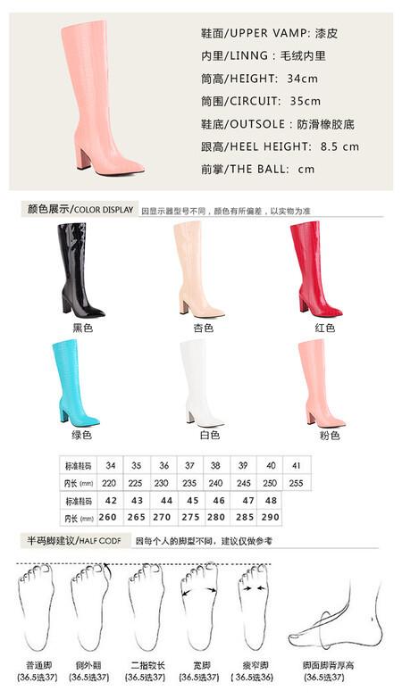 Color: negro, albaricoque, rojo, rosa, blanco, verde. Talla: 34-48, esta foto es talla 37, Altura del tacón: 8,5cm, Tejido: Charol repujado; Forro: forro de felpa corto, Suela: Suela de goma. Altura del tubo: 34 cm. Circunferencia del tubo: 35 cm.