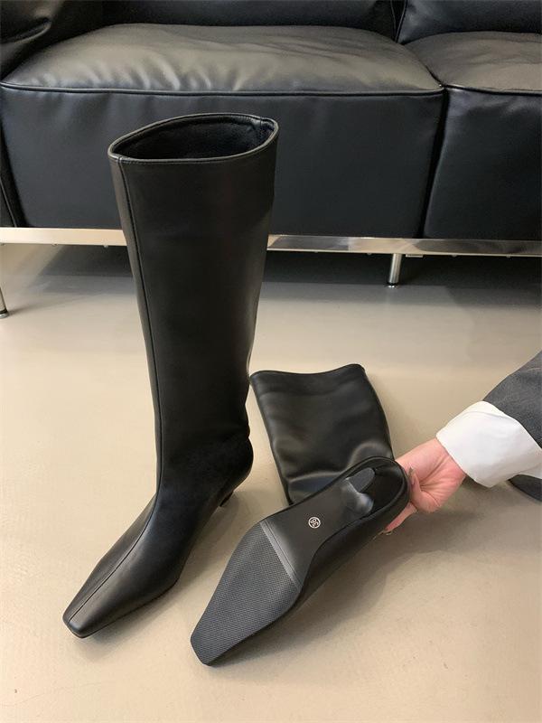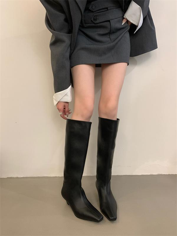Botas altas de cabeza cuadrada sencillas, nuevas, de otoño e invierno de 2024, para uso diario, con fondo suave y versátil, botas de caballero