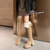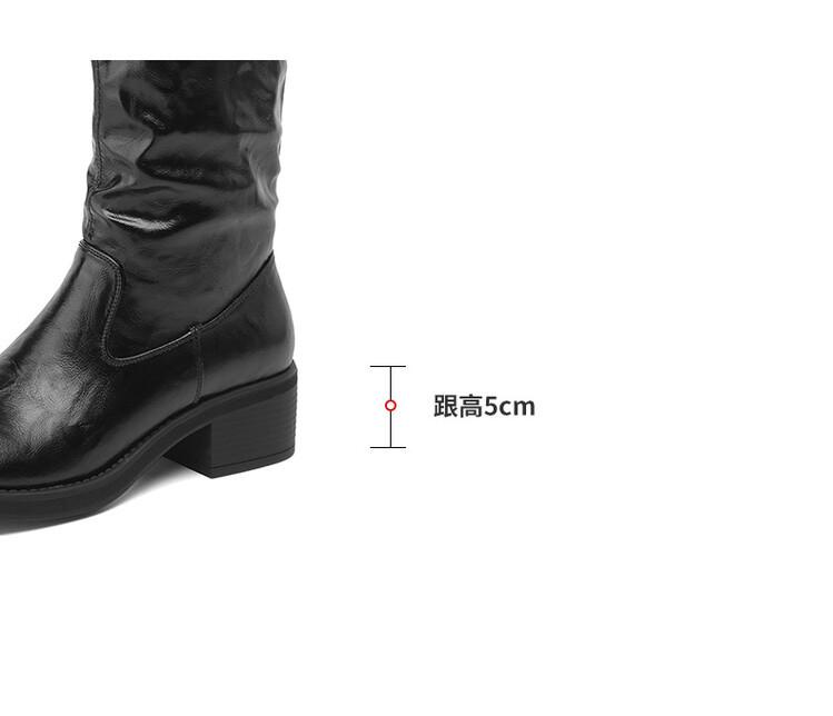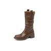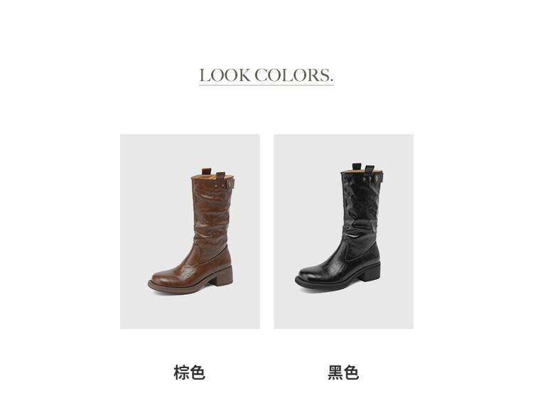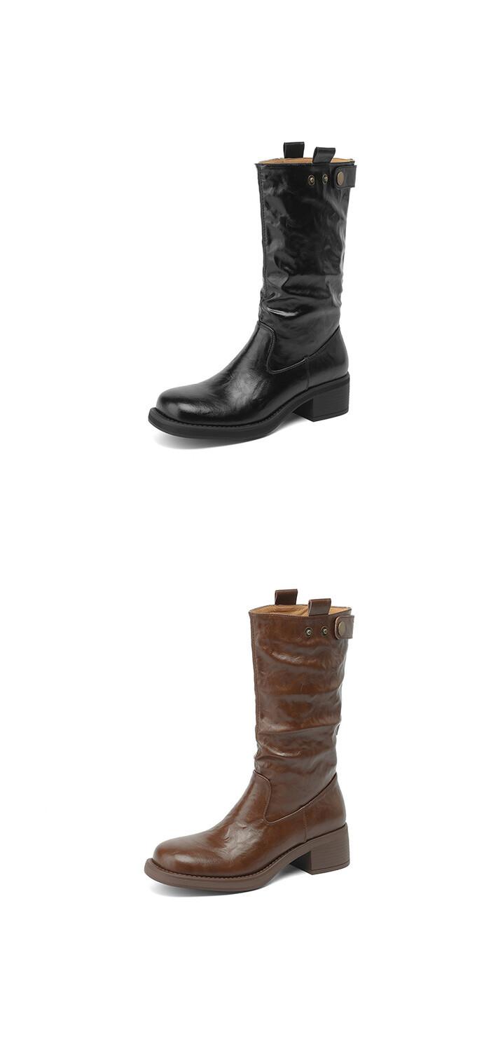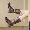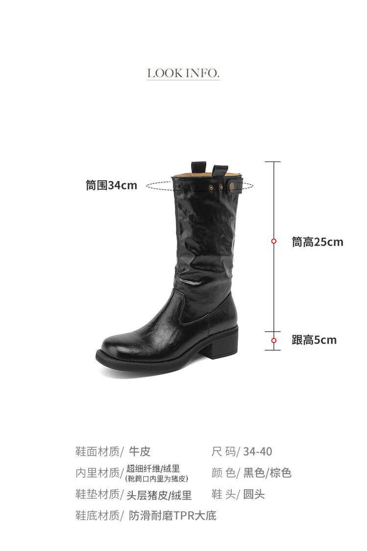 Botas retro de media caña para mujer, adelgazantes, plisadas, de piel auténtica, con forro polar, para otoño/invierno, de tacón medio grueso, estilo western europeo y americano, de mezclilla, para otoño/invierno.