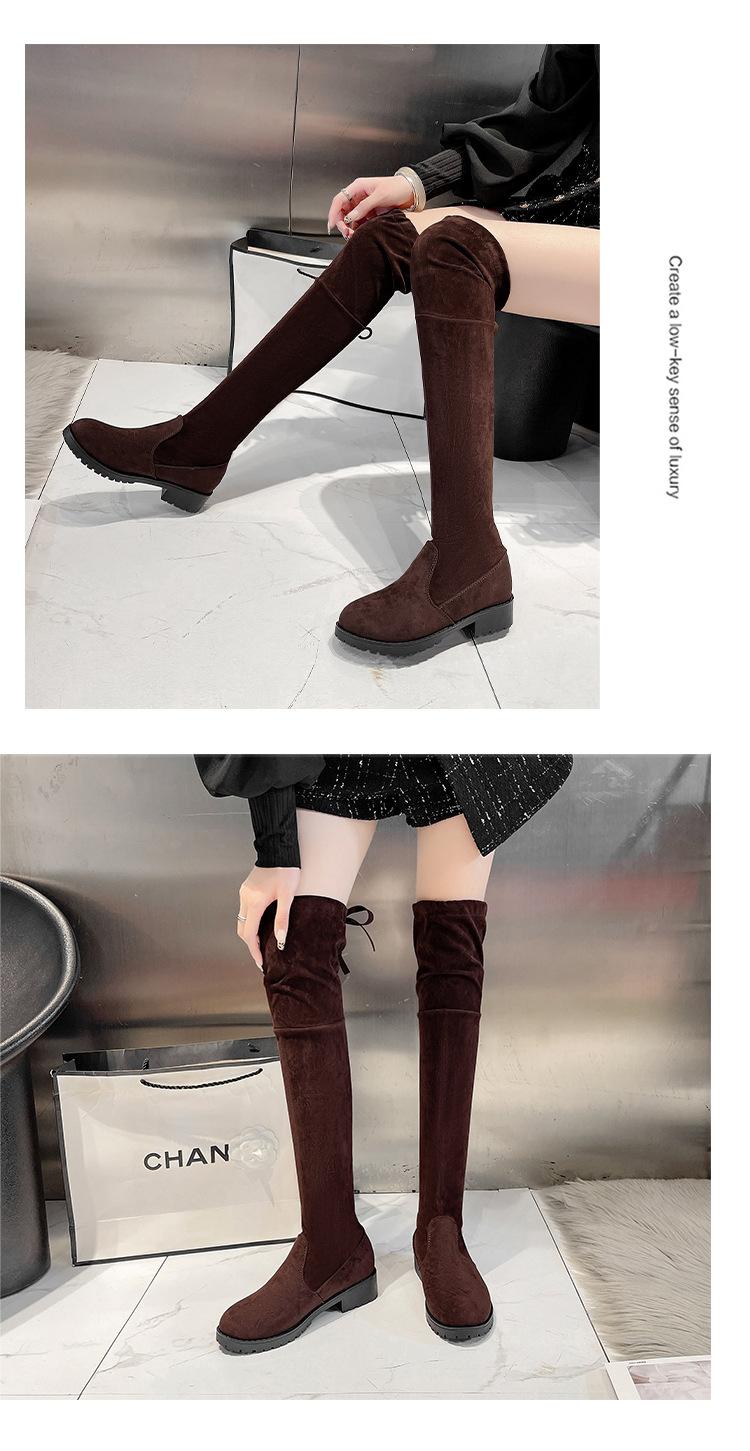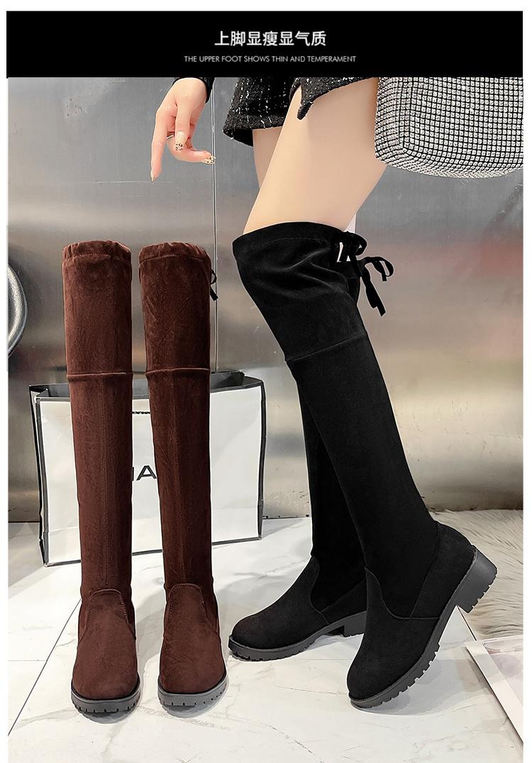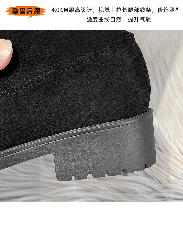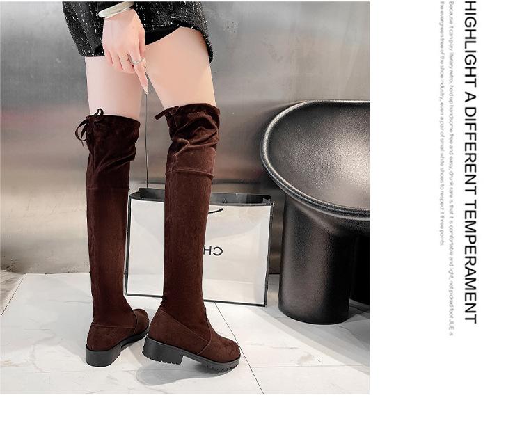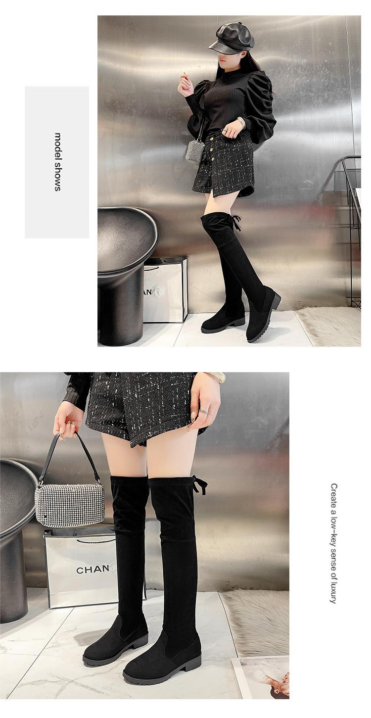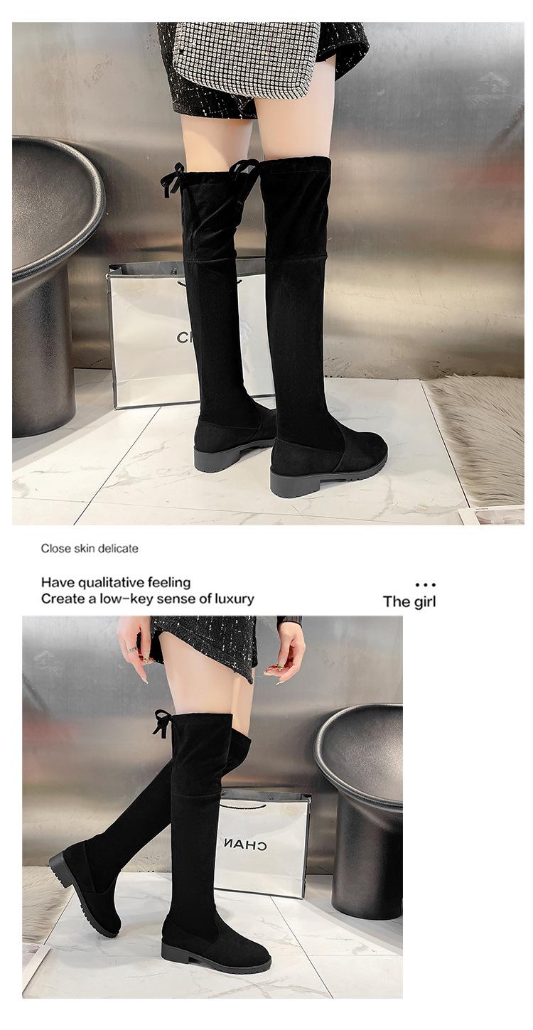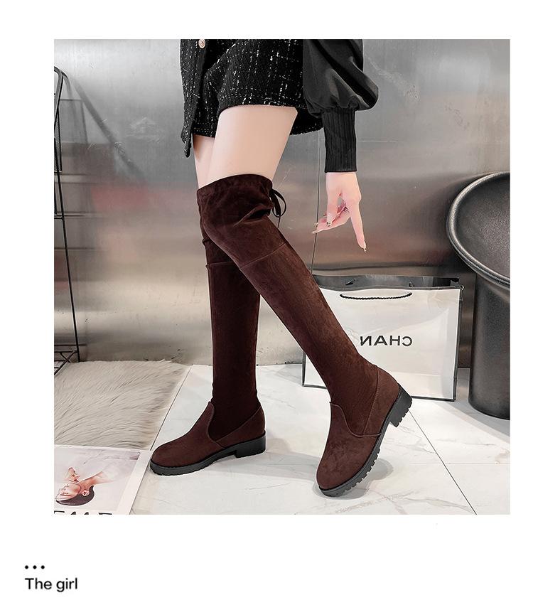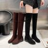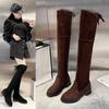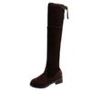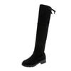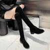 Botas altas por encima de la rodilla para mujer, tallas grandes, con costuras, otoño e invierno 2024, botas elásticas de ante negro, botas finas de ante con tacón grueso
