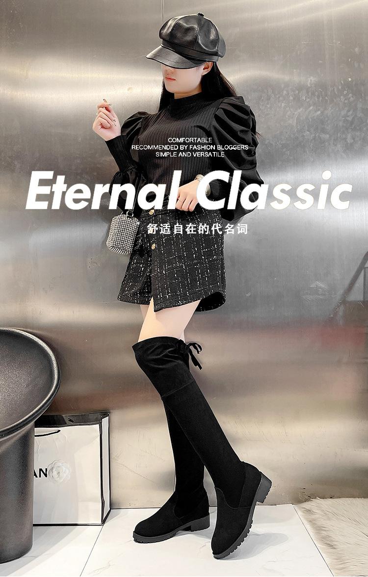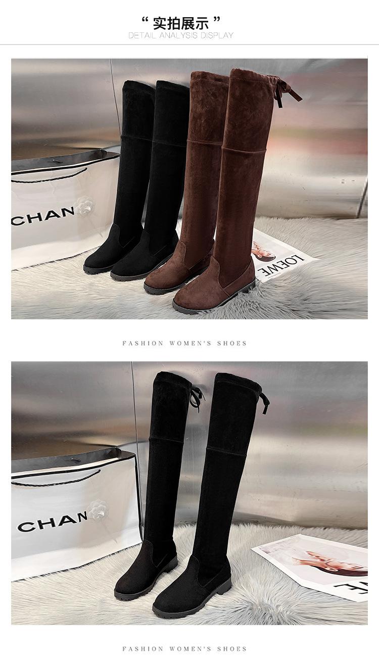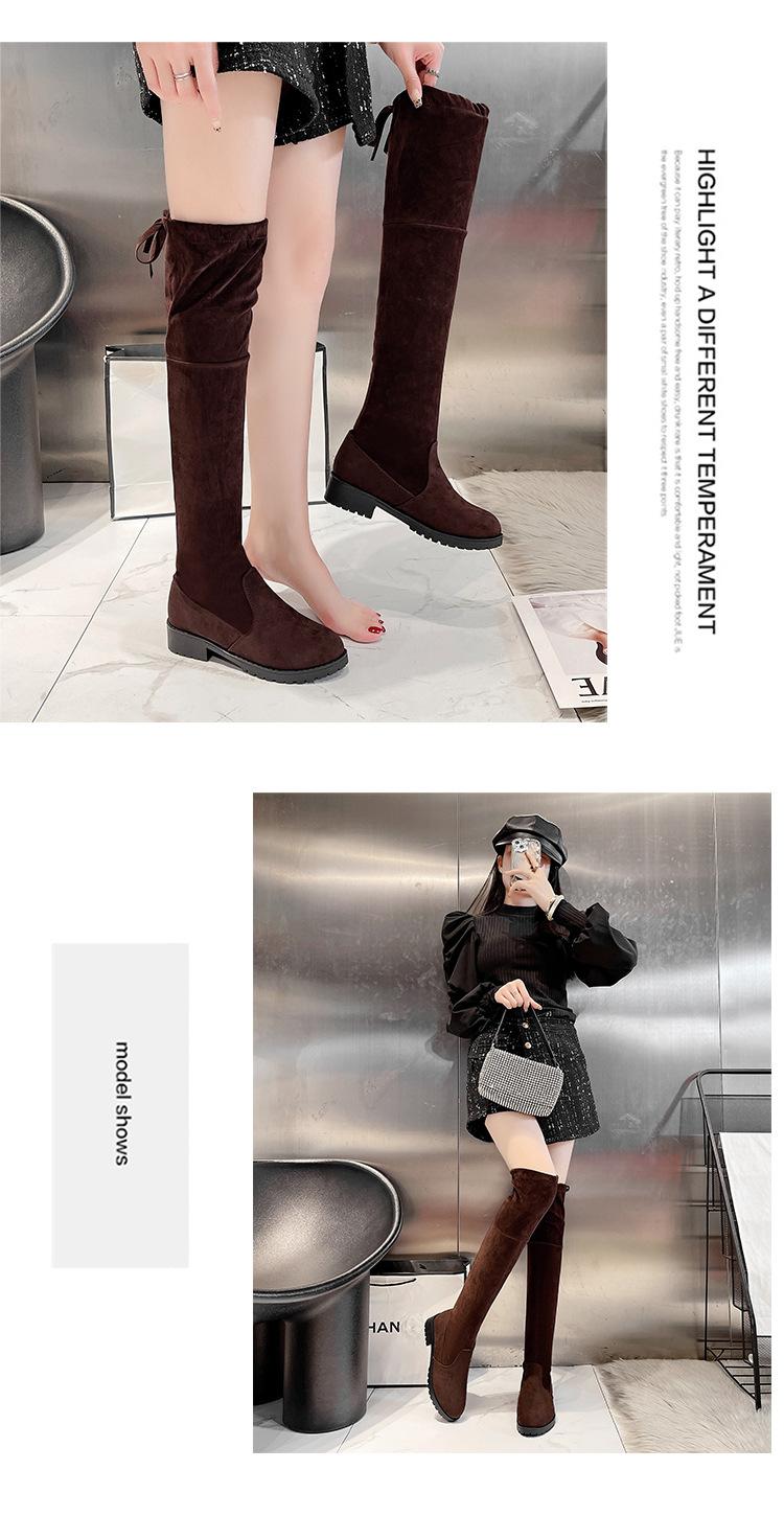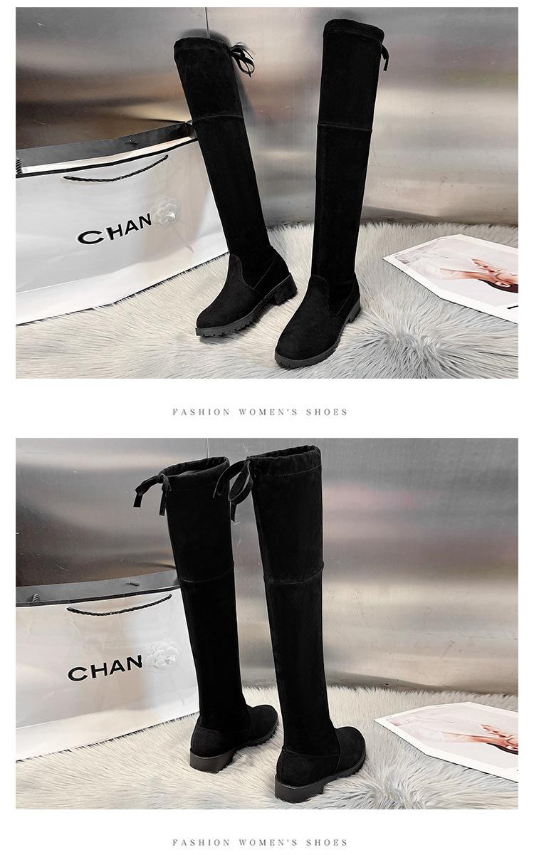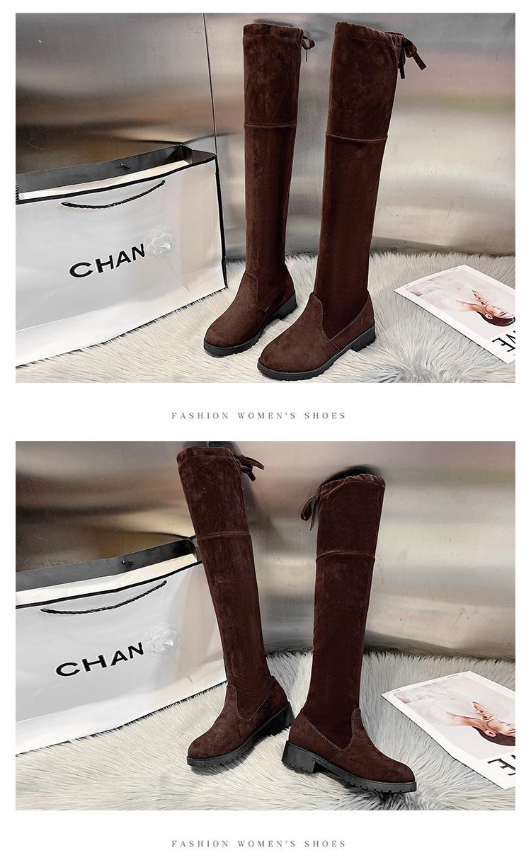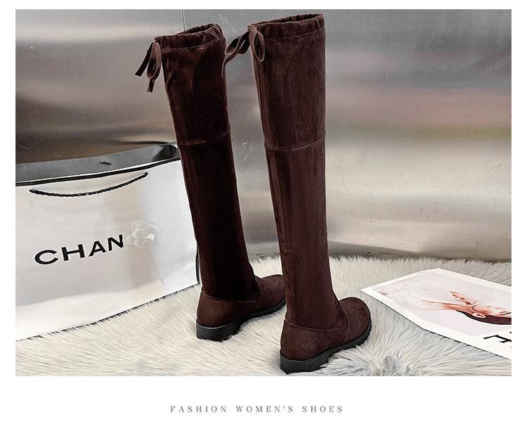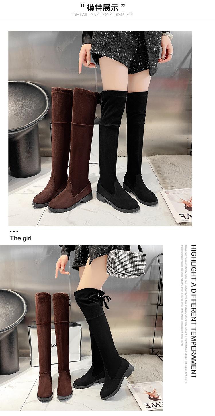 Botas altas por encima de la rodilla para mujer, tallas grandes, con costuras, otoño e invierno 2024, botas elásticas de ante negro, botas finas de ante con tacón grueso