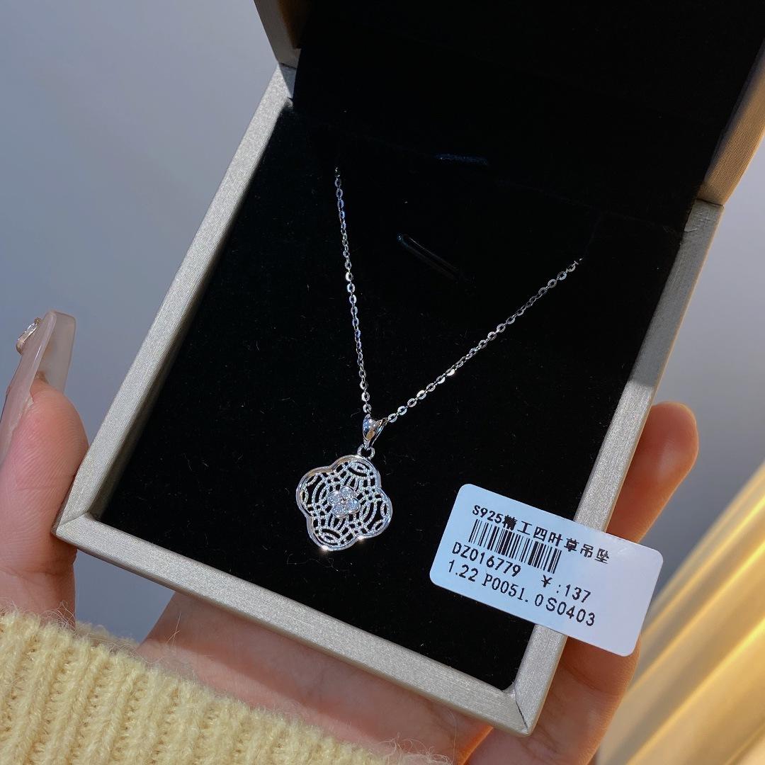 Light luxury diamond four-leaf clover [pendant]/about 1.22g, Matching sterling silver necklace/about 1.4g