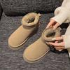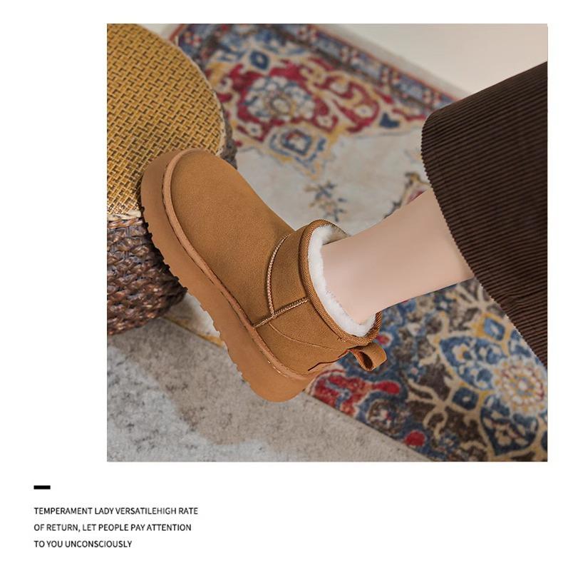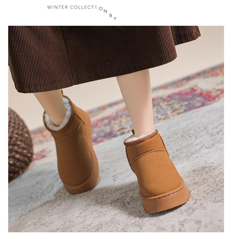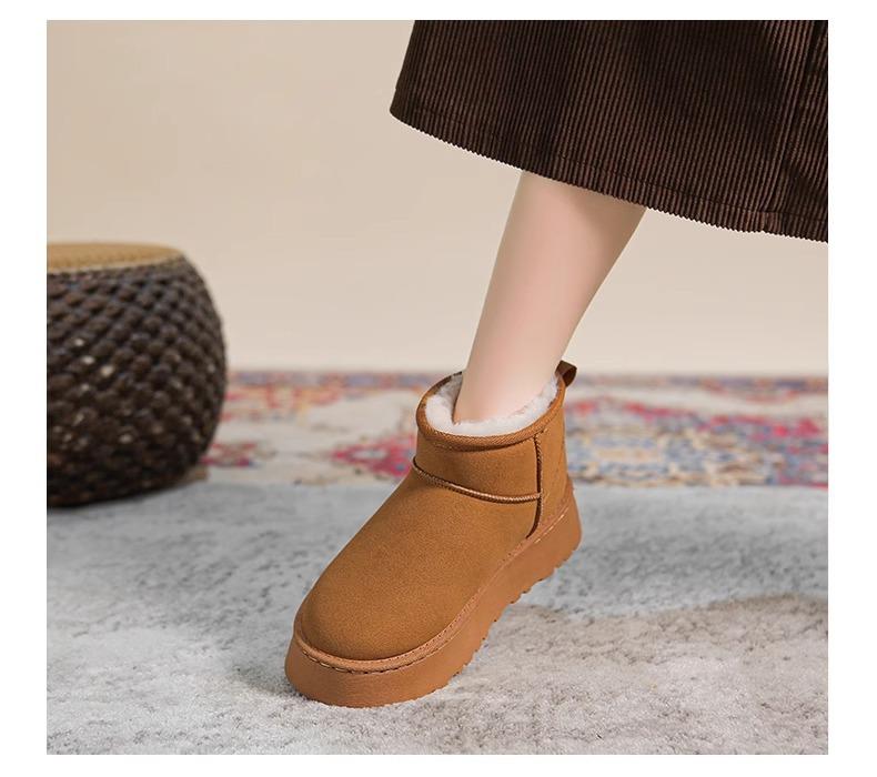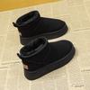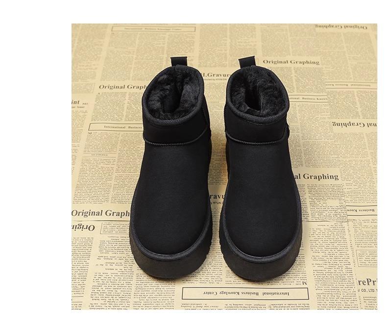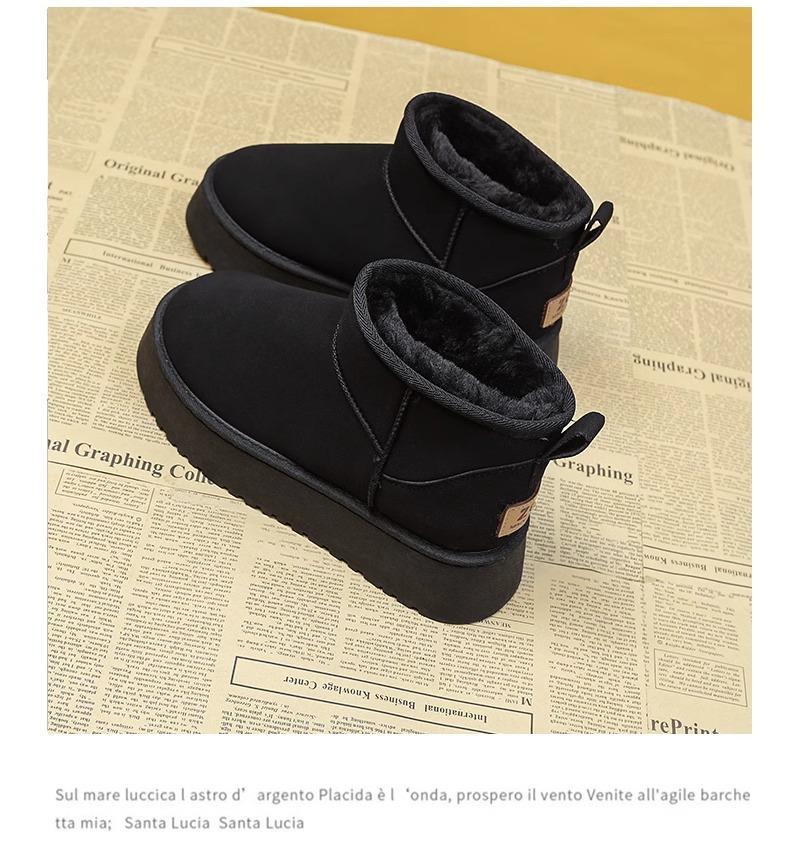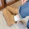 Botas de nieve de suela gruesa para mujer 2024, nuevas botas de nieve de cuero con forro polar grueso, zapatos de algodón para mujer, zapatos de pan de invierno de tubo corto