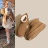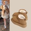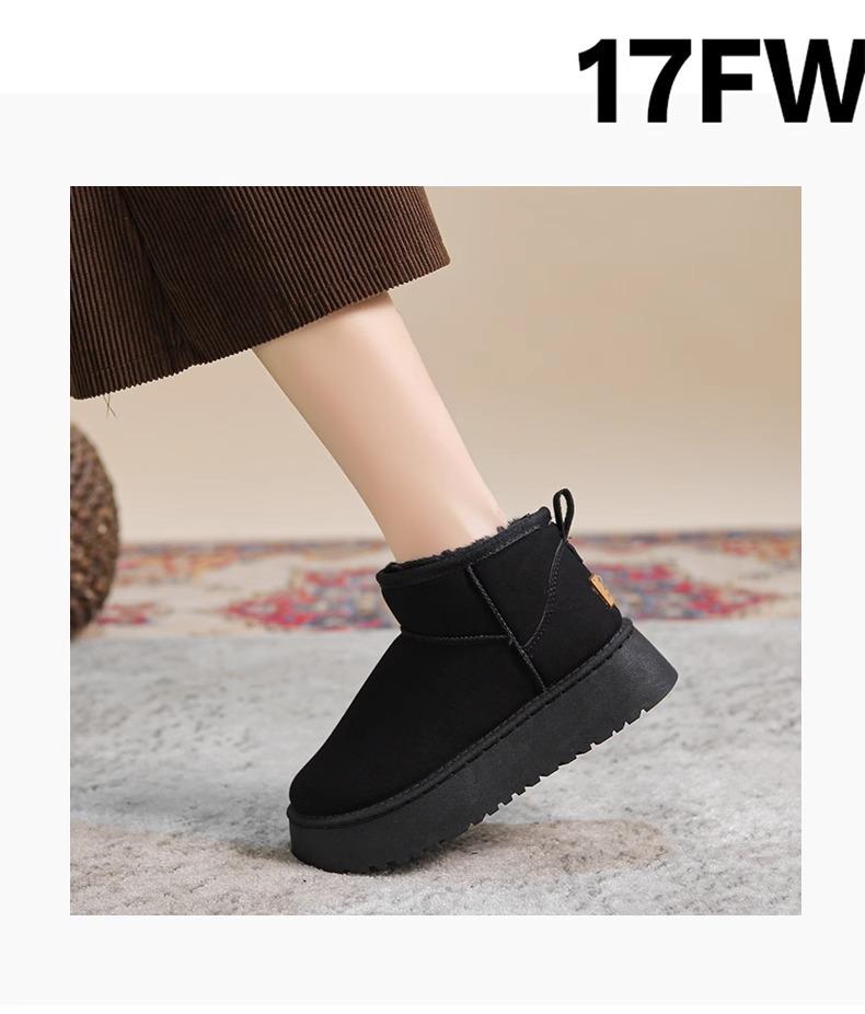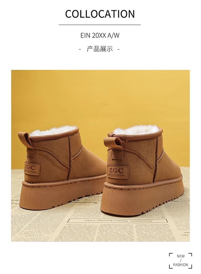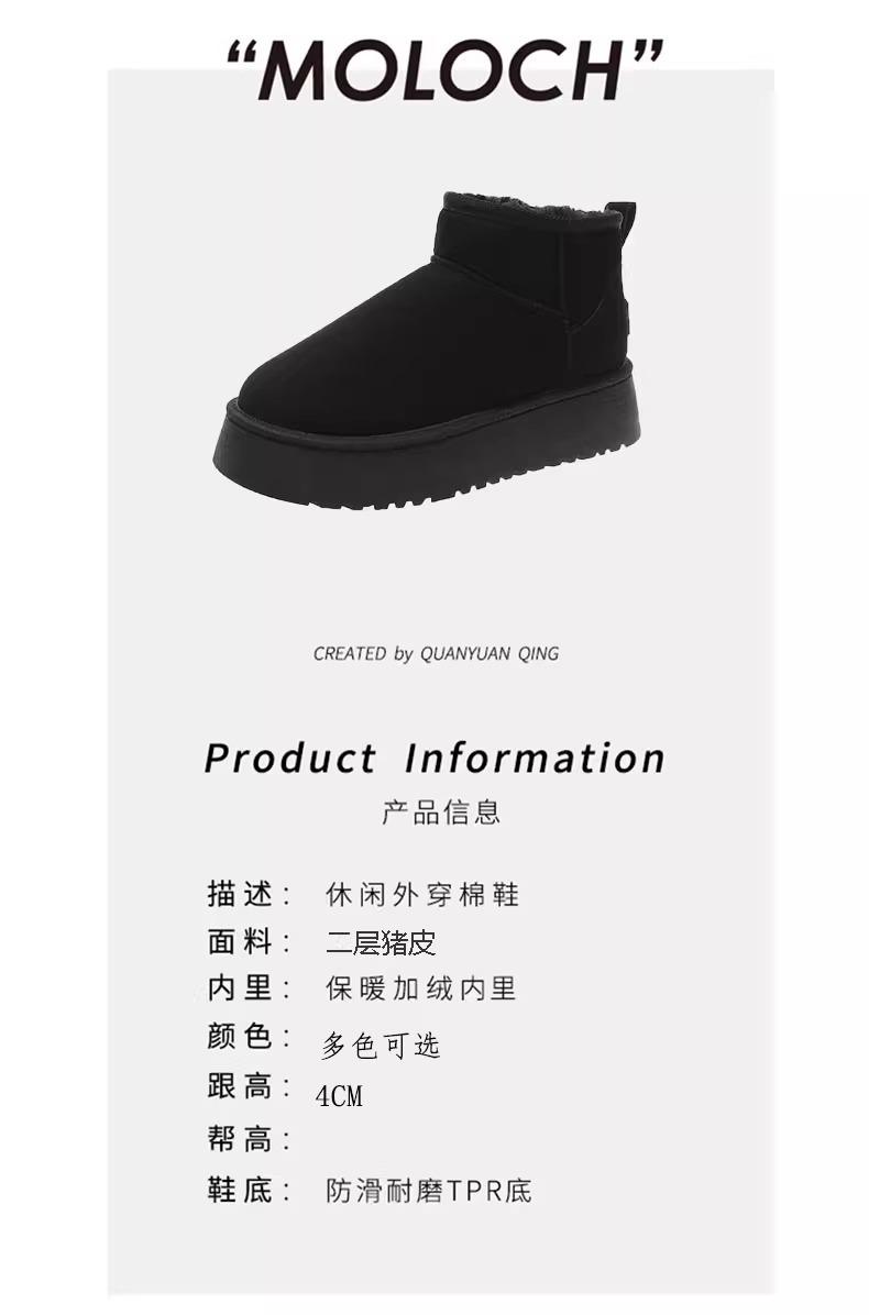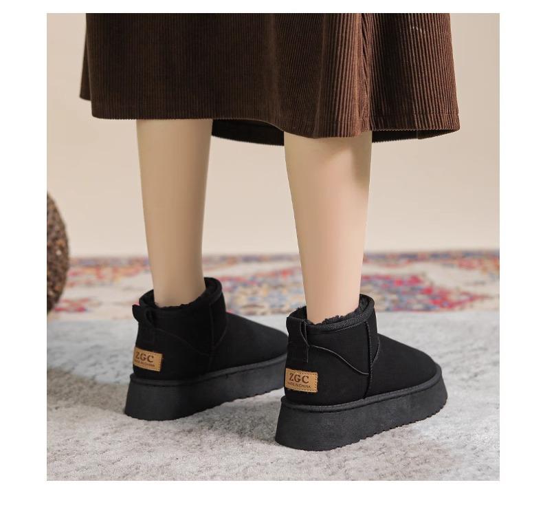 Botas de nieve de suela gruesa para mujer 2024, nuevas botas de nieve de cuero con forro polar grueso, zapatos de algodón para mujer, zapatos de pan de invierno de tubo corto