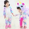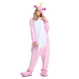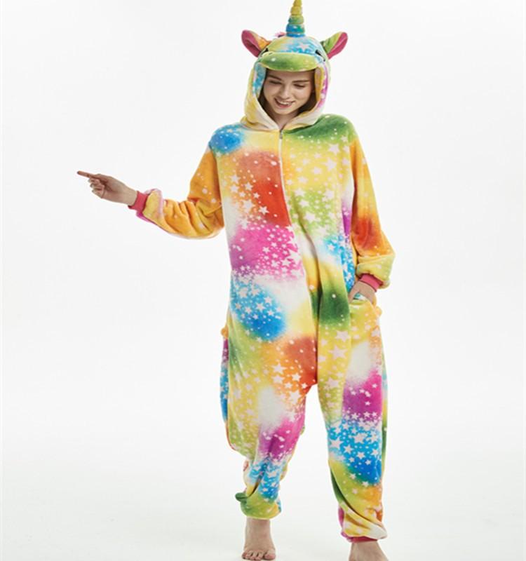 Pijama de Unicornio de Franela de una Pieza de Animal de Dibujos Animados Unicornio Arcoíris Rojo Rosado Disfraz de Actuación para el Hogar Grueso y Cálido