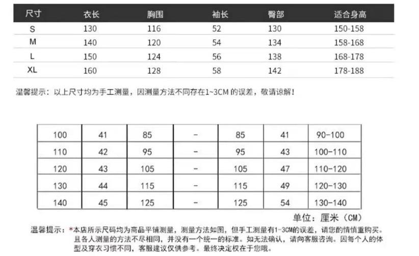 S, M, L, XL, 100, 110, 120, 130, 140