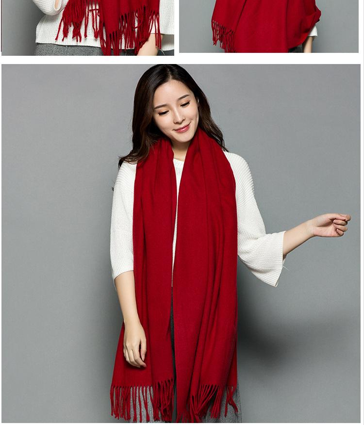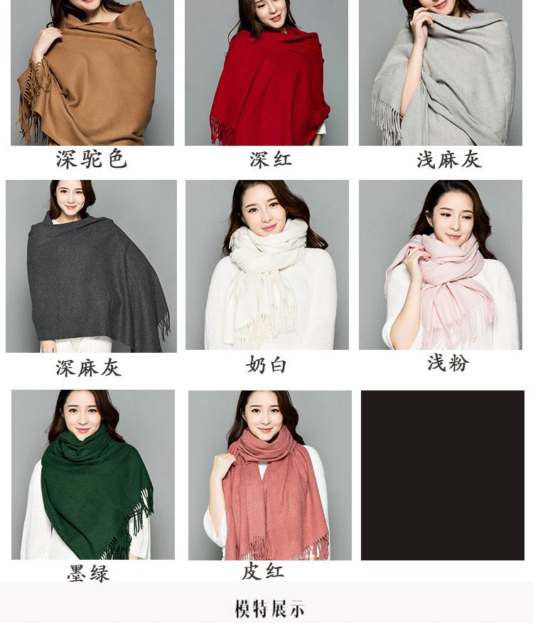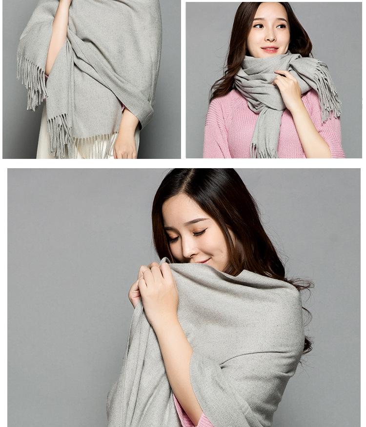 Bufanda de Lana de Invierno para Mujer Coreana Otoño e Invierno Combinación con Todo Cálida Gruesa Invierno Color Sólido Gris Chal Bufanda de Doble Uso